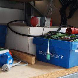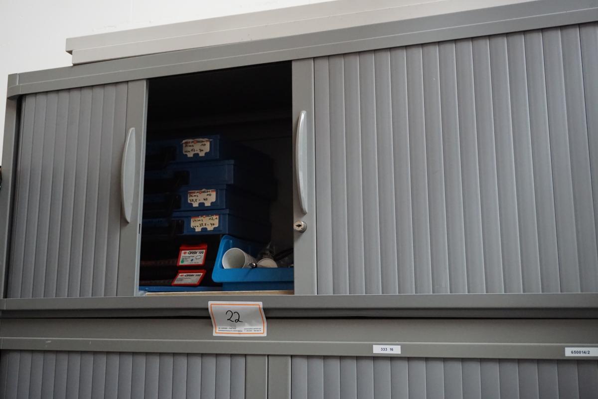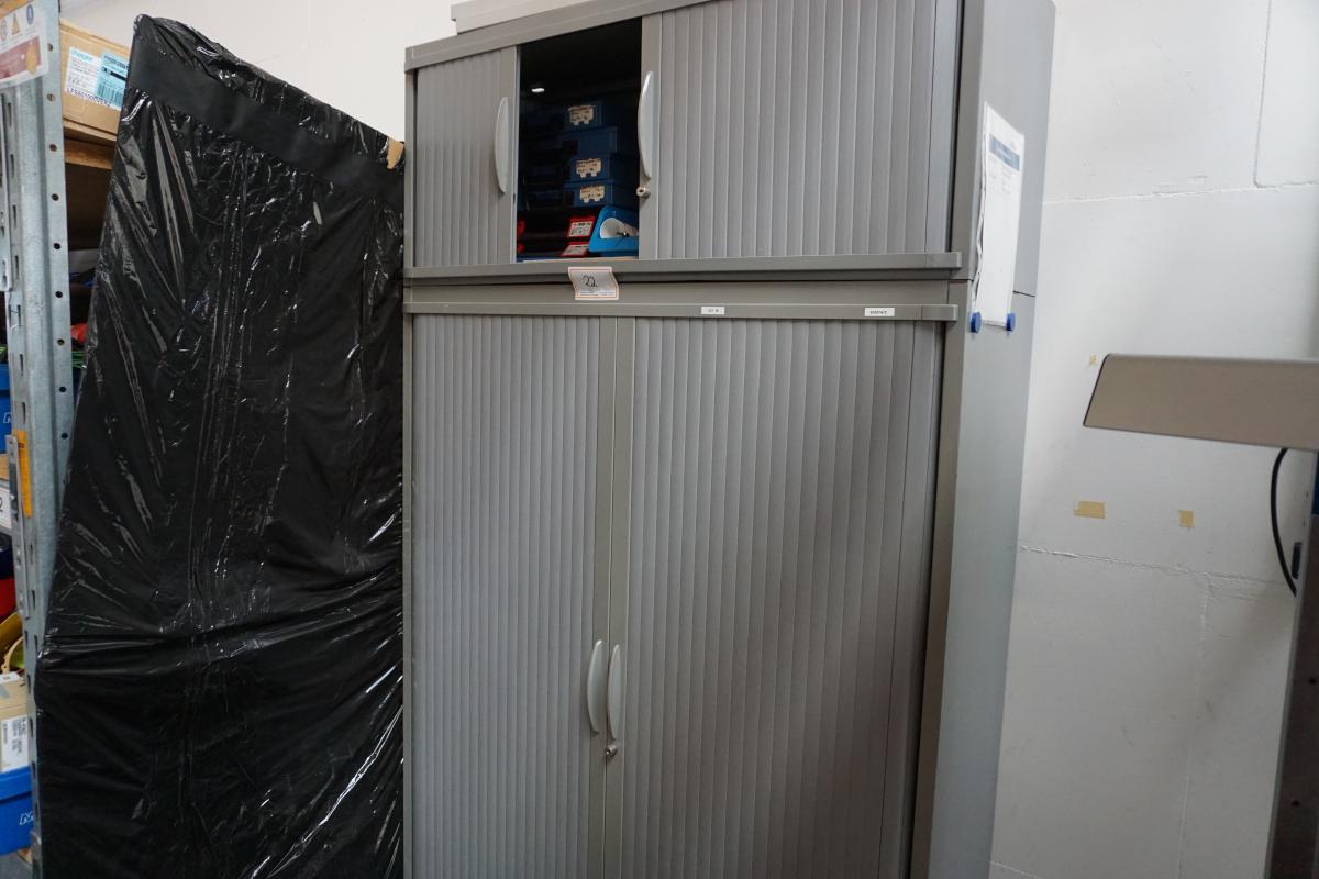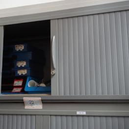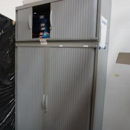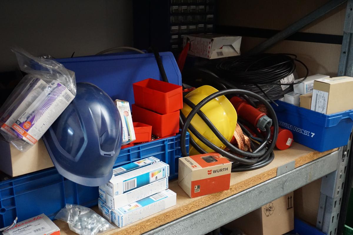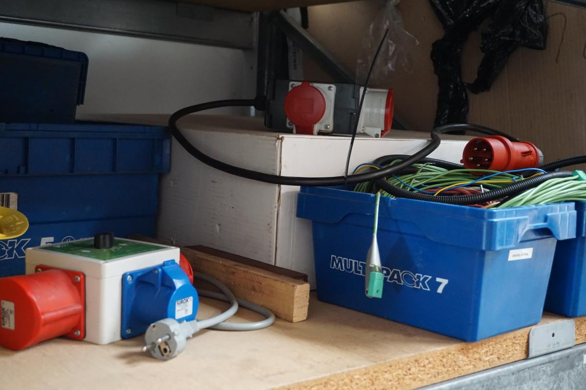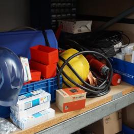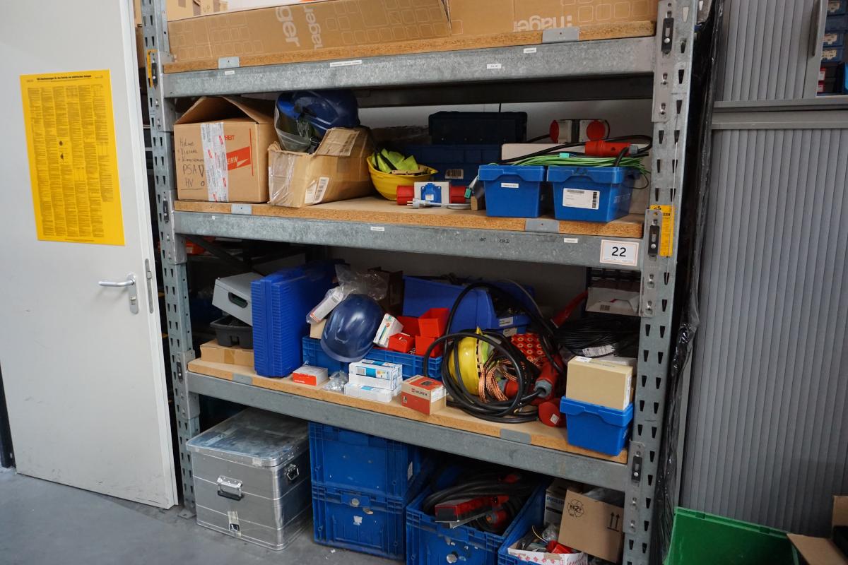 Plug-in system, approx. 2,000 x 2,500 mm, 3 levels, plywood shelf, shelf load 2,248 kg, contents: power cable, helmets, consumables, roller shutter cabinet