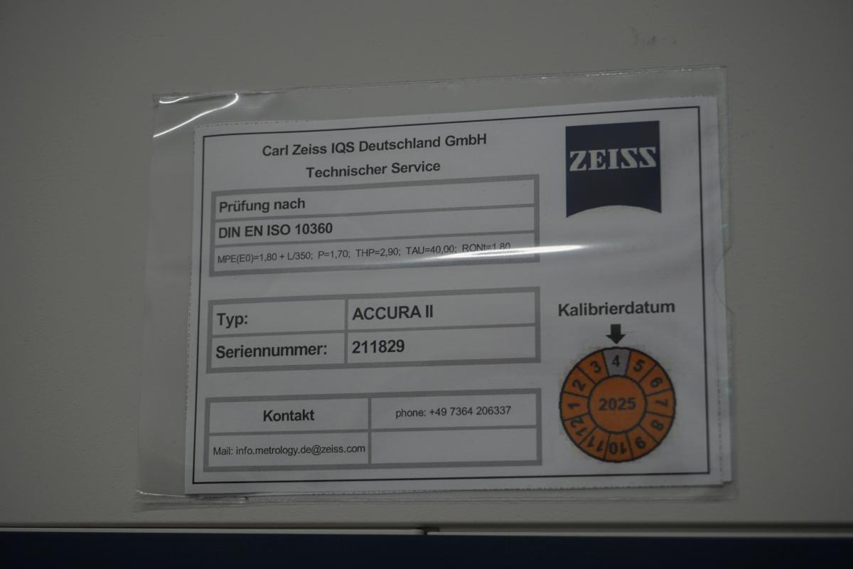 Make: ZEISS, Model: CMM Accura 12/18/10, Year of construction: 2018, Make: ZEISS, type: CMM Accura 12/18/10, year of manufacture 2018, serial no. 211829, measuring range 1,200 x 1,800 x 1,000 mm, portal measuring arm, manufacturer F.I Technology, measuring head, type VAST XT, measuring height approx. 1,000 mm, measuring probe exchange stand, 6 places, external control, manufacturer Zeiss, 22" TFT monitor, keyboard, mouse, desk, manufacturer Yaasa, electrically height-adjustable, W approx. 1,200 mm, office swivel chair, 16 interchangeable measuring probes, various designs and sizes, 2 measuring probe storage and transport cabinets, sliding doors