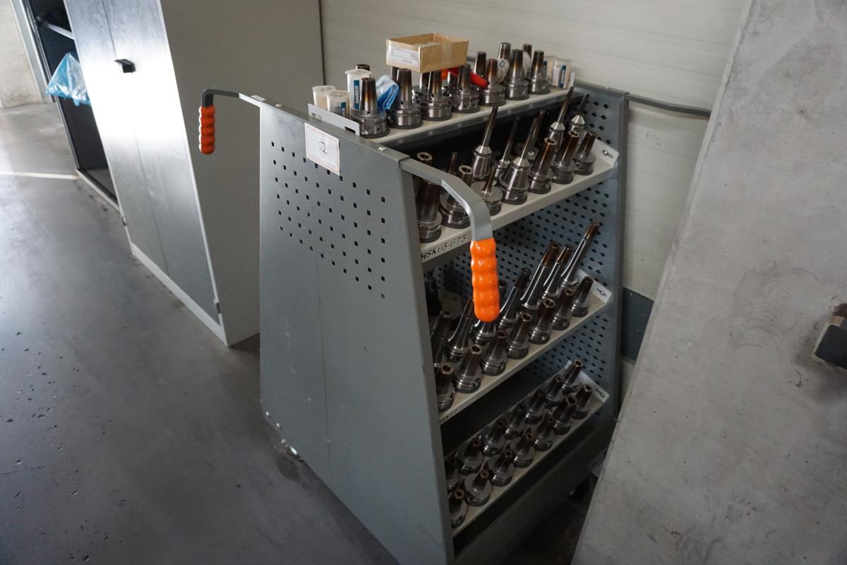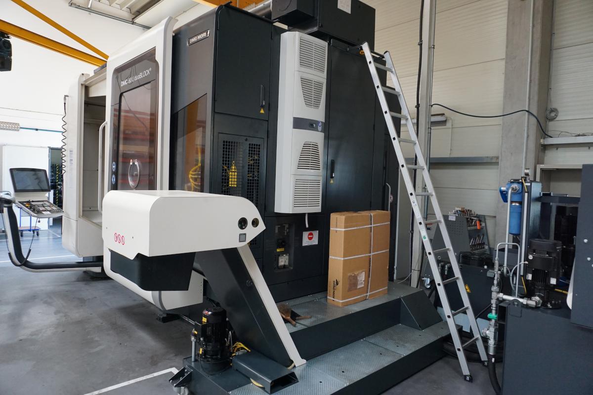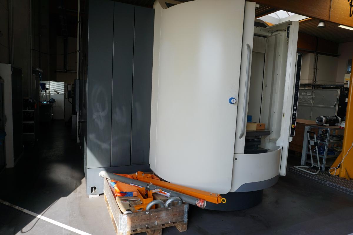 Make: DMG MORI, Model: DMC80U duoBLOCK, Year of construction: 2018, Make: DMG MORI, type: DMC80U duoBLOCK, year of manufacture: 2018, serial no. 12390001363, Spindle speed max. 24,000 rpm, weight 20,000 kg, operating hours 27,216 / spindle 13,401, control, type ERGOline, 2 clamping tables, tool holder HSK63, tool magazine, 63 slots, cooling unit, coolant device, fleece belt filter, underfloor chip conveyor, production mist extraction, filter unit