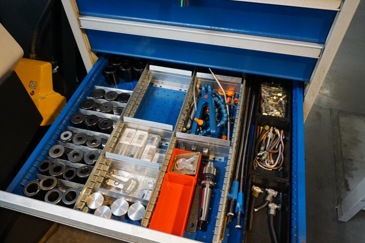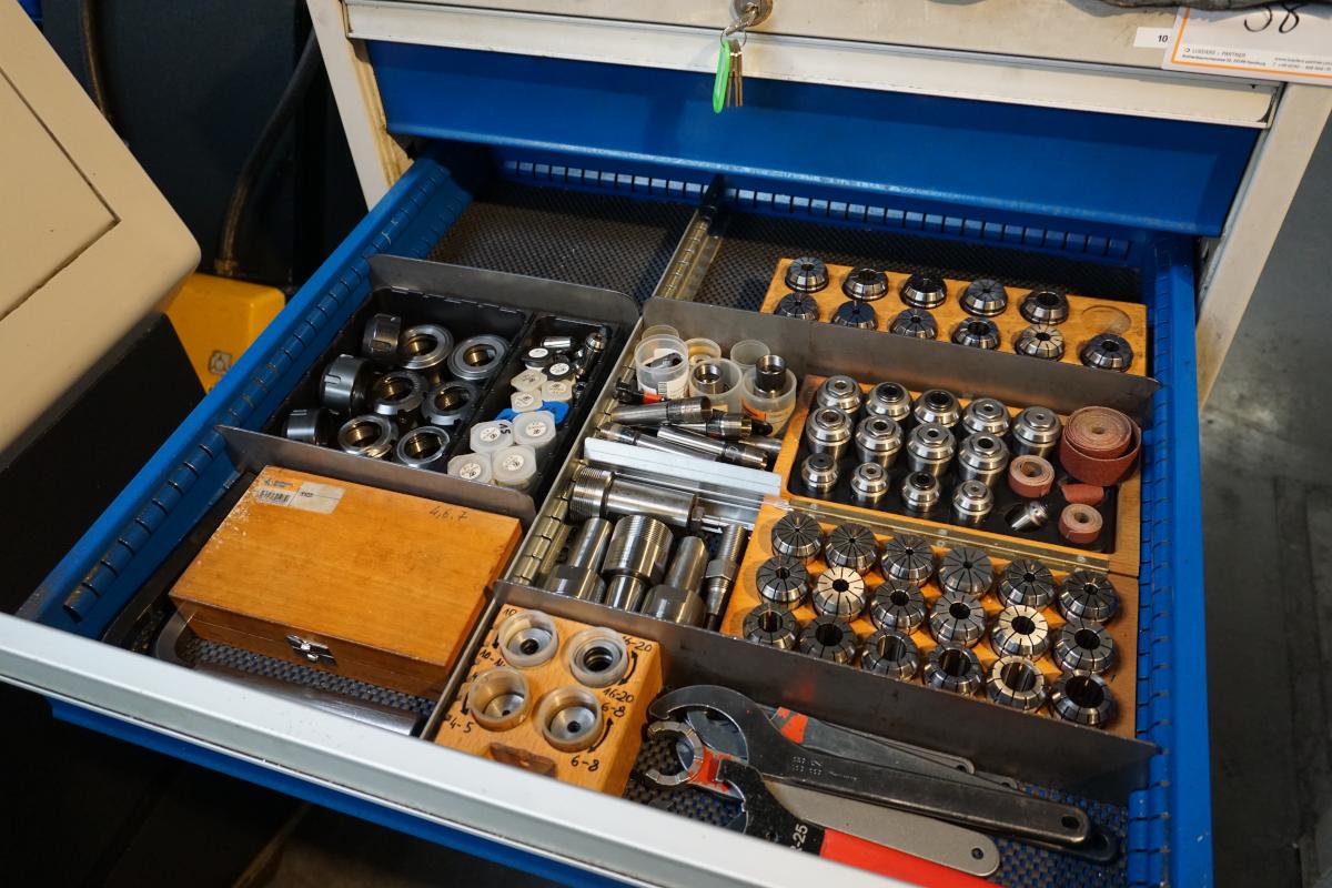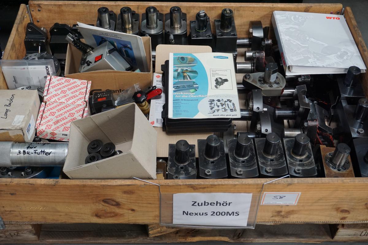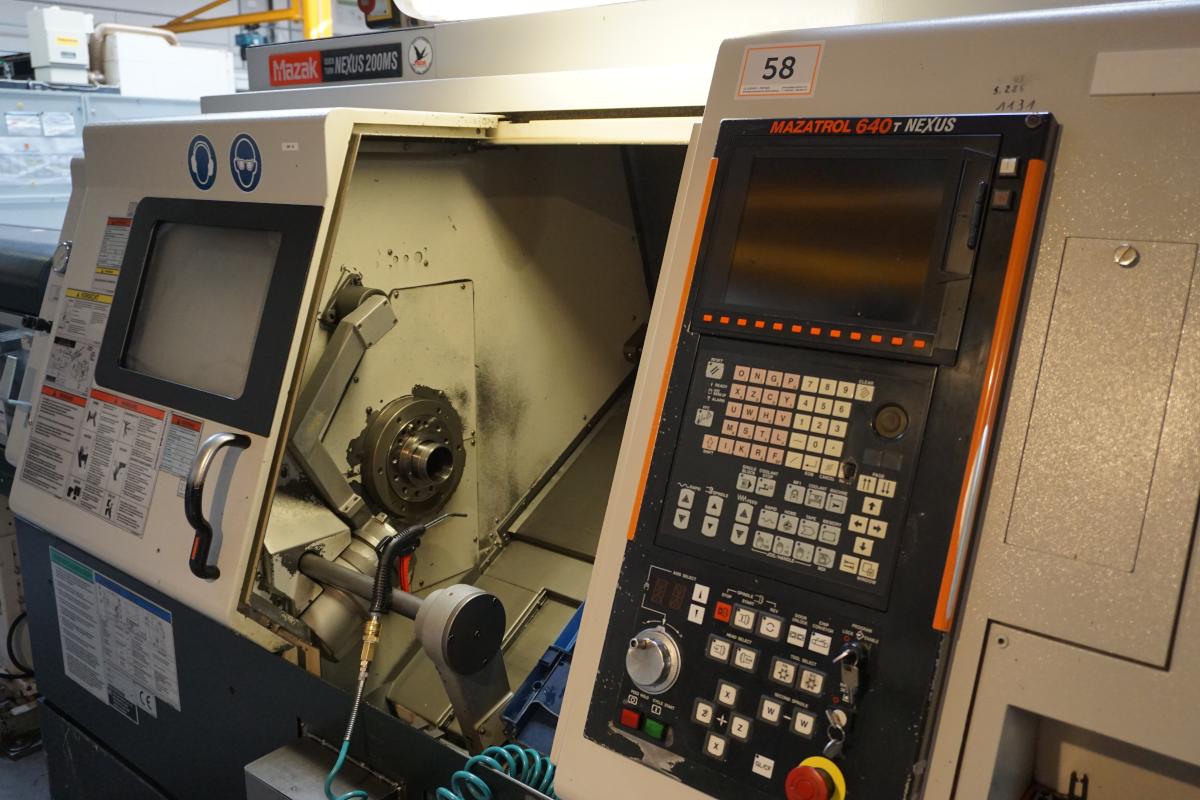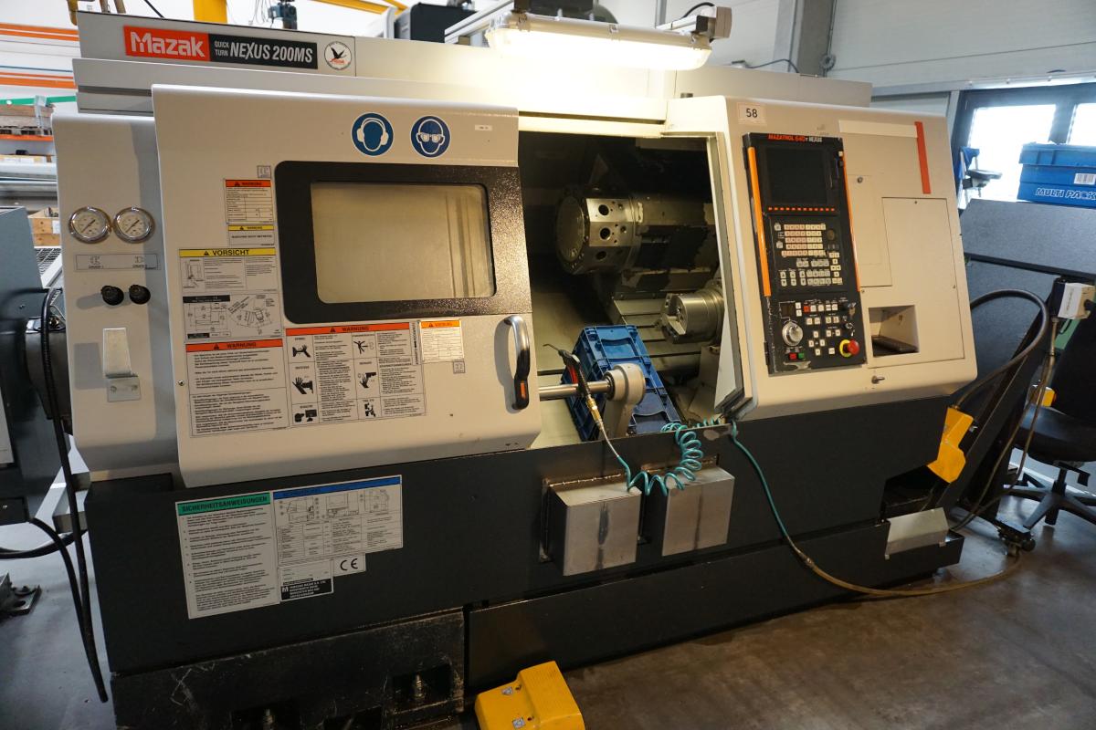 Make: MAZAK, Model: Quickturn Nexus 200MS, Year of construction: 2004, Make: MAZAK, type: Quickturn Nexus 200MS, year of manufacture 2004, serial no. 171660, weight 4,900 kg, control, type Mazatrol 640T Nexus, bar loader, manufacturer LNS, type Quickload Servo 3, year of manufacture 2004, serial no. 155641, Max. bar length 1,500 mm, turret tool head, 12 positions, operating hours 52,632, coolant system, underfloor chip conveyor, telescopic drawer cabinet, 8 pull-outs, contents: collets, indexable inserts, pallet with accessories, driven tools