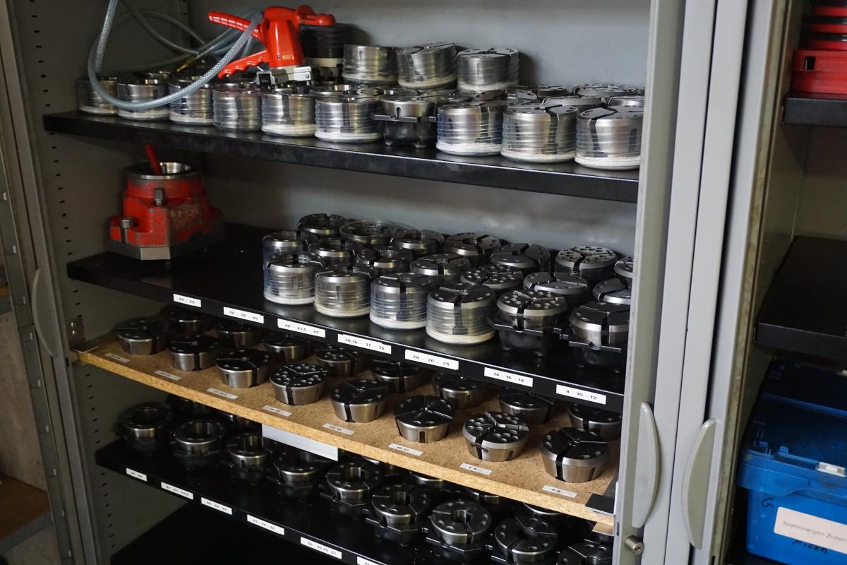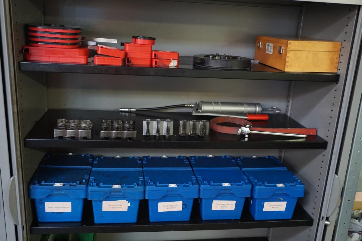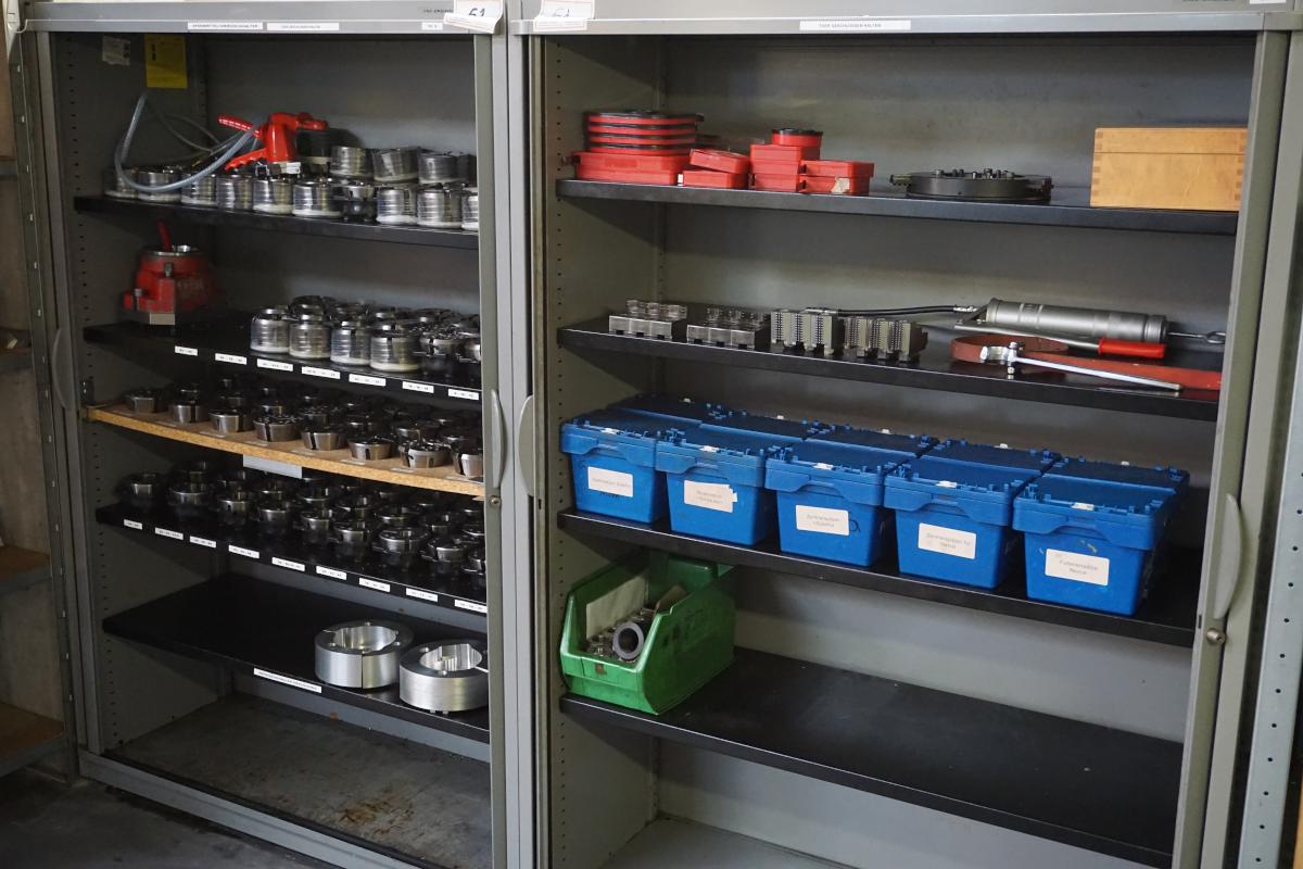 H 1,600 mm, roller shutter, contents: approx. 90 various clamping jaw holders, different designs and sizes, approx. 10 driven tool holders (for Nexus 200)