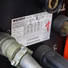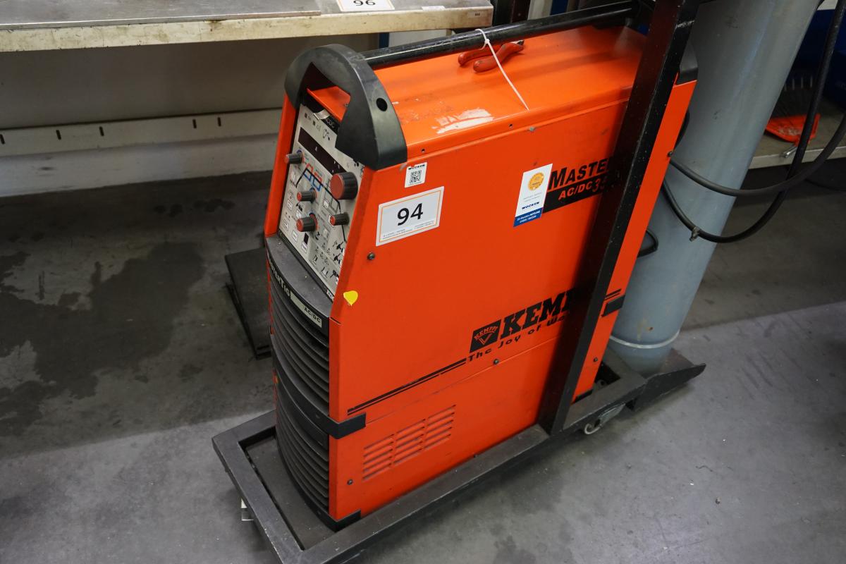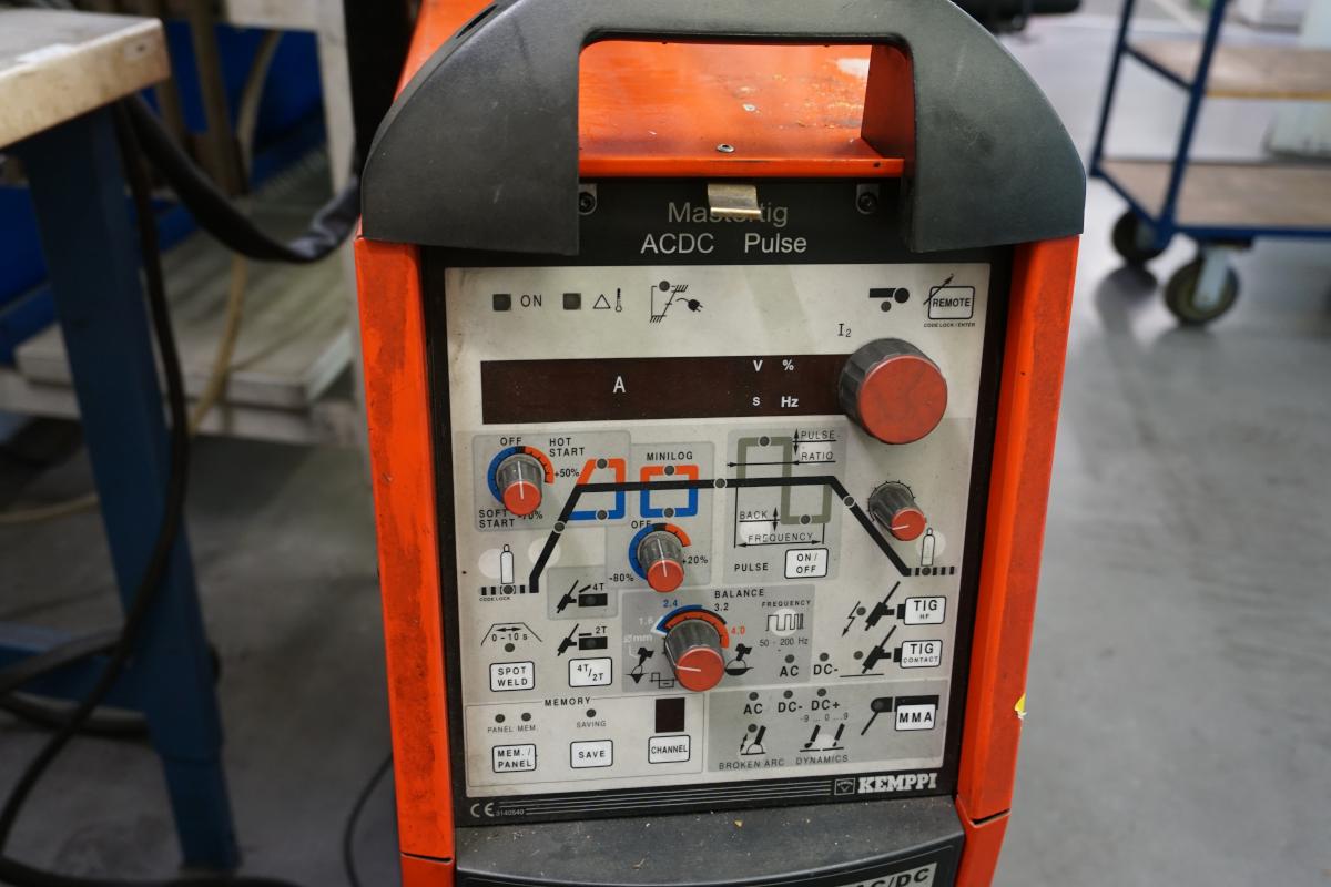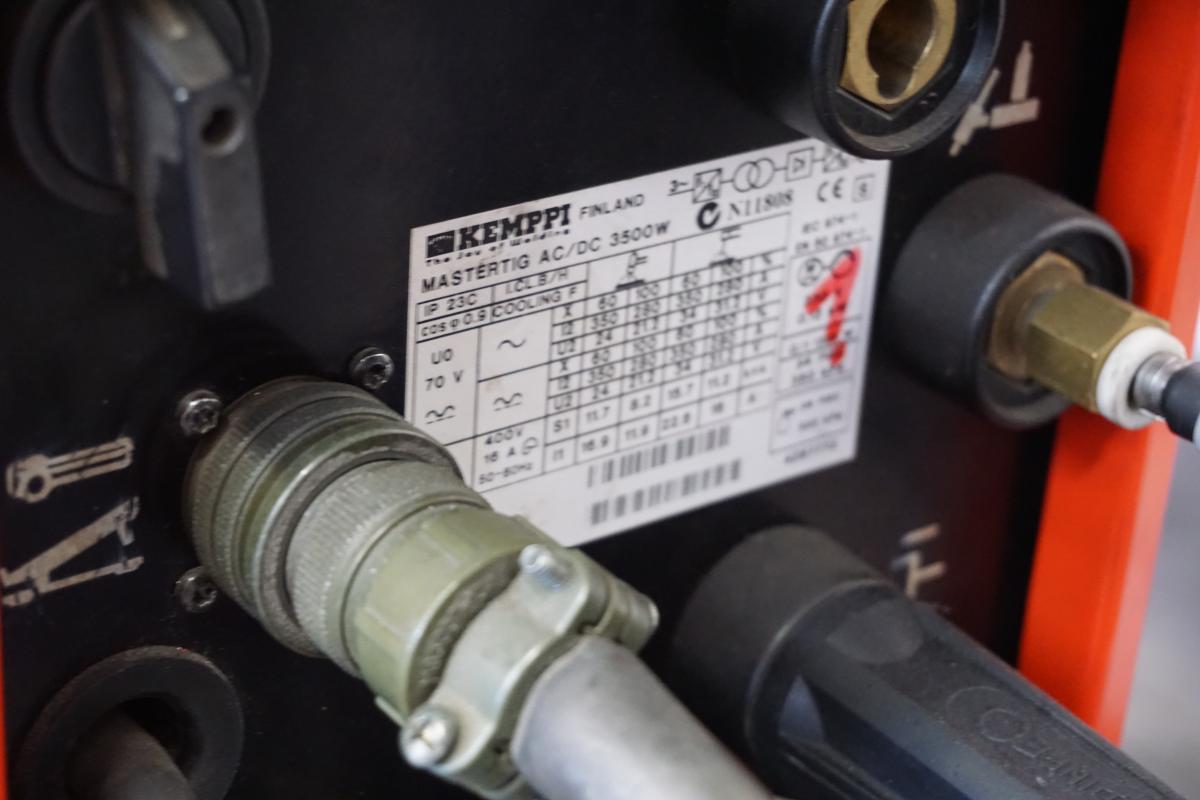 Make: KEMPPI, Model: Master TIG AC/DC Pulse 3500W, Make: KEMPPI, type: Master TIG AC/DC Pulse 3500W, serial no. 1185720S, max. 350 A, 24 V, integrated cooling, roller stand