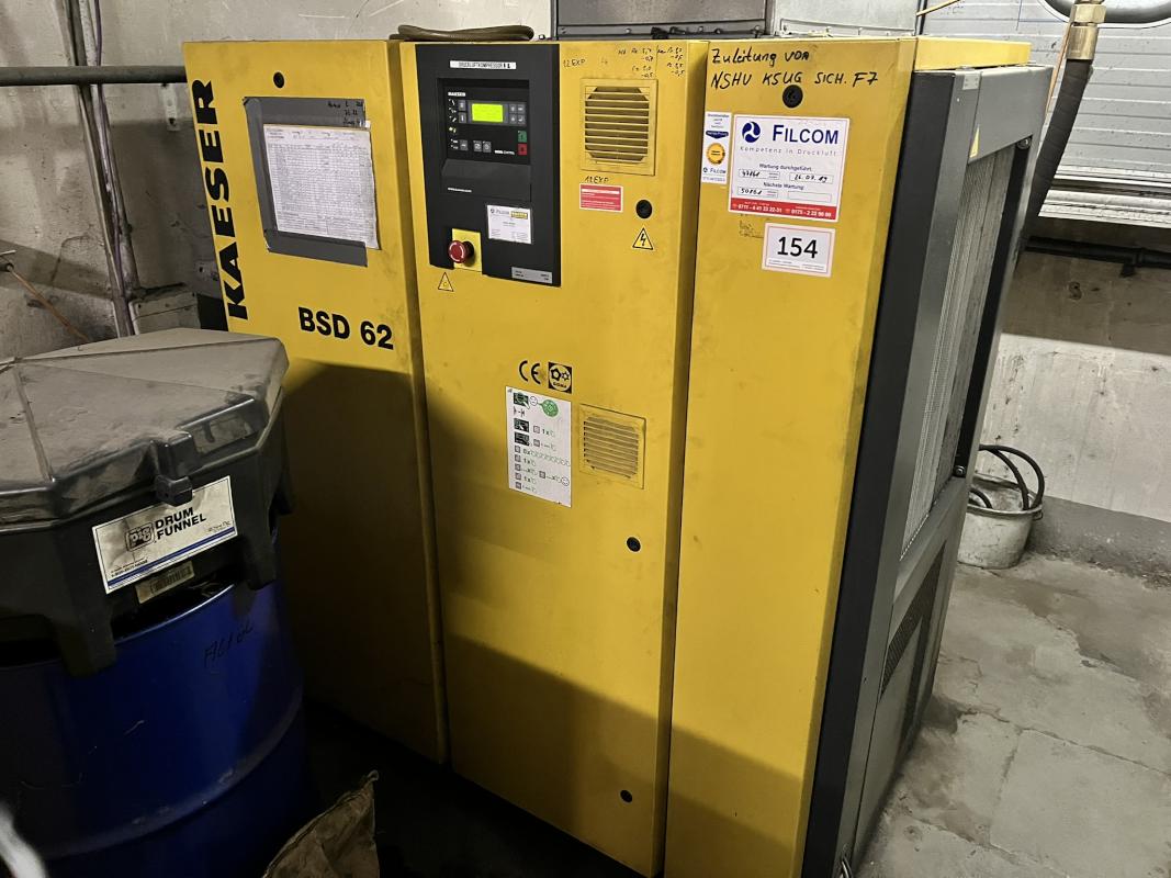 Make: KAESER, Model: BSD62, Serial no. 1003, Sigma Control control system, electrical power 30 kW, max. pressure 8 bar, operating hours: 49,401/load 26,970