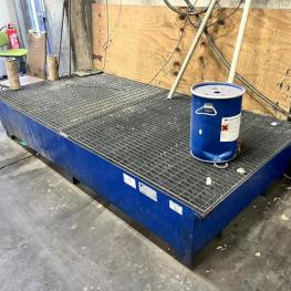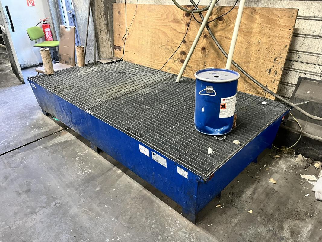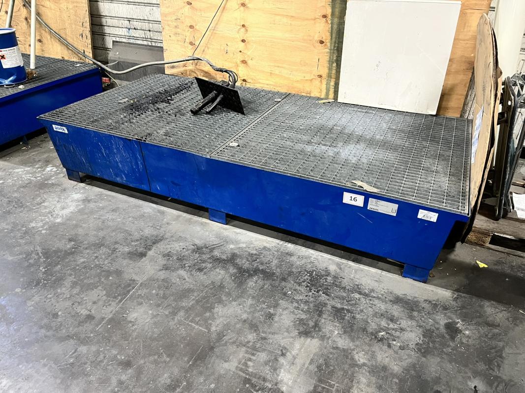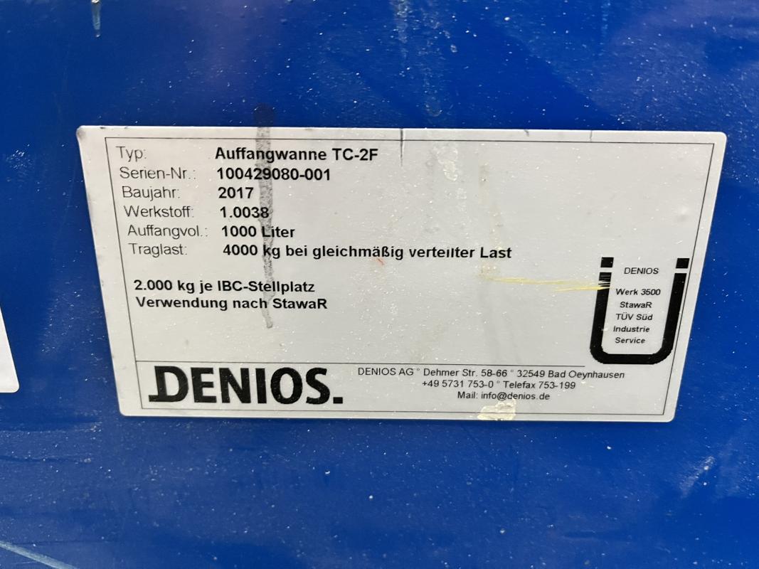 Make: DENIOS, Model: TC-2F, Year of construction: 2017, 1,000 l each, load capacity 4,000 kg, grating support, 2,600 x 1,300 mm each, 2 feed pumps