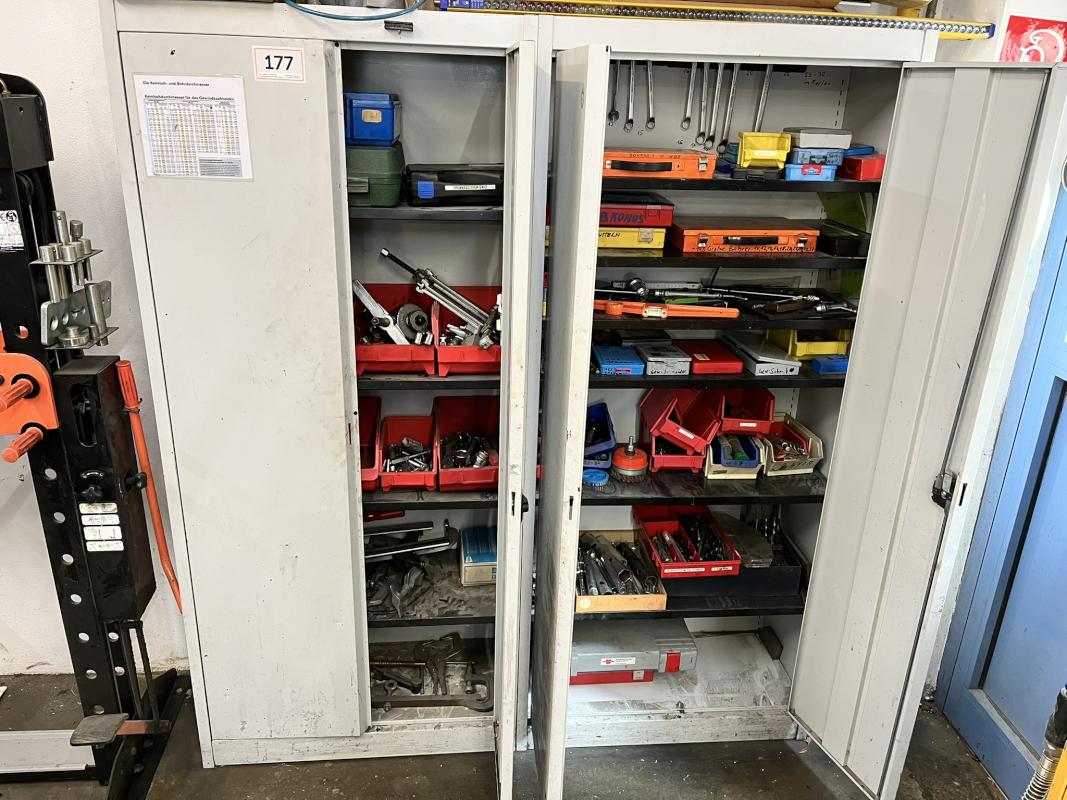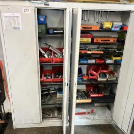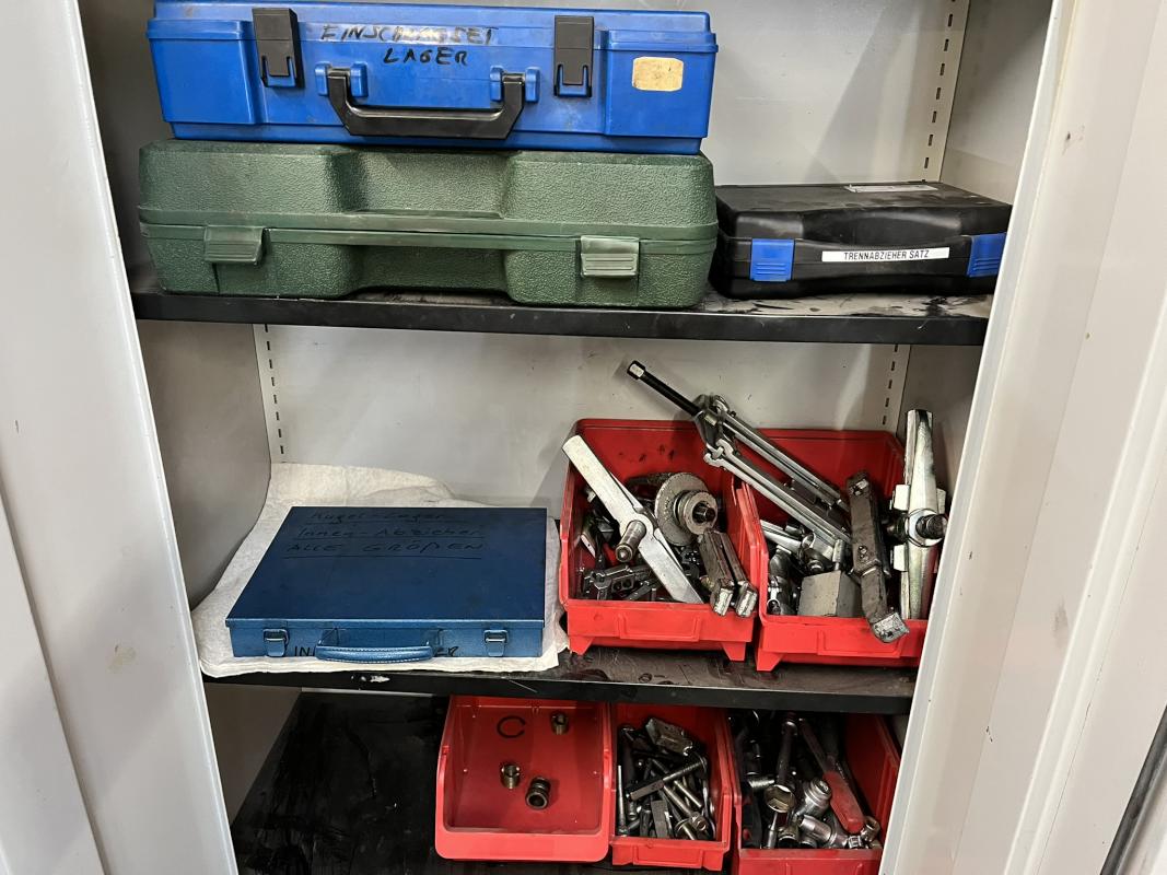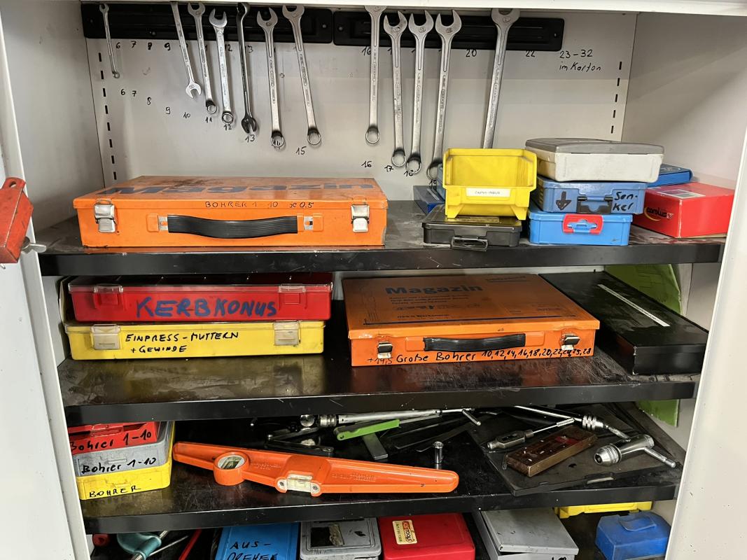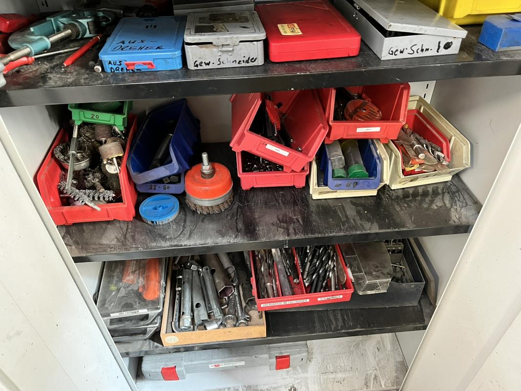 2 hinged doors each, order: various collets, approx. 10 pcs., drill bits, thread cutters
