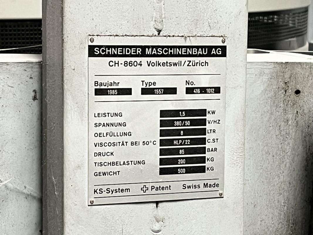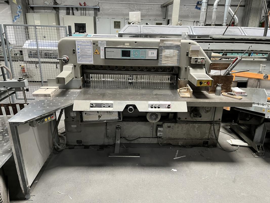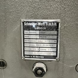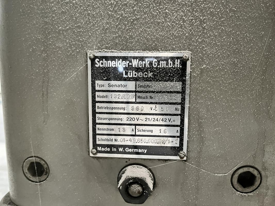 Make: SCHNEIDER-WERK, Model: Senator 132 MG, Year of construction: 1990, Model no. 51368, max. paper length 1,320 mm, max. paper stack height max. 140 mm, automatic vibrating machine, manufacturer Schneider Maschinenbau, type 1073, year of manufacture 1985, serial no. 95-1012, 2.5 kW, weight 1,450 kg, destacker manufactured by Schneider Maschinenbau, type 1557, year of manufacture 1985, serial no. 416-1012, weight 500 kg, table load max. 200 kg