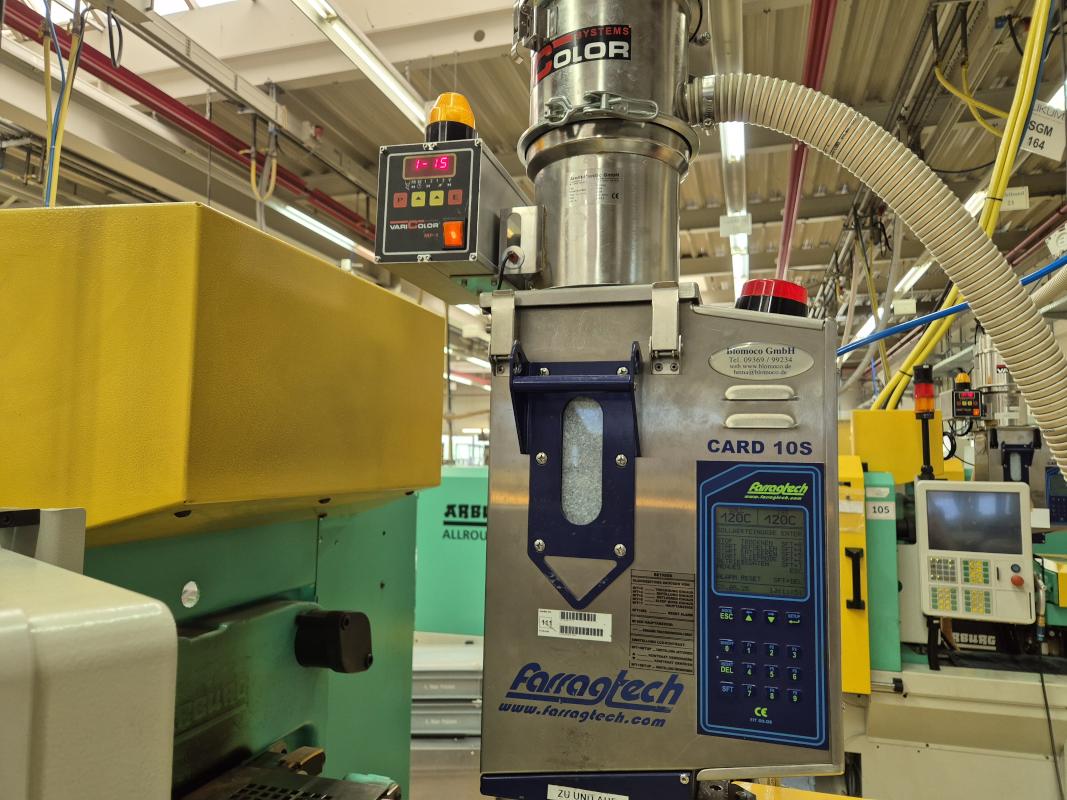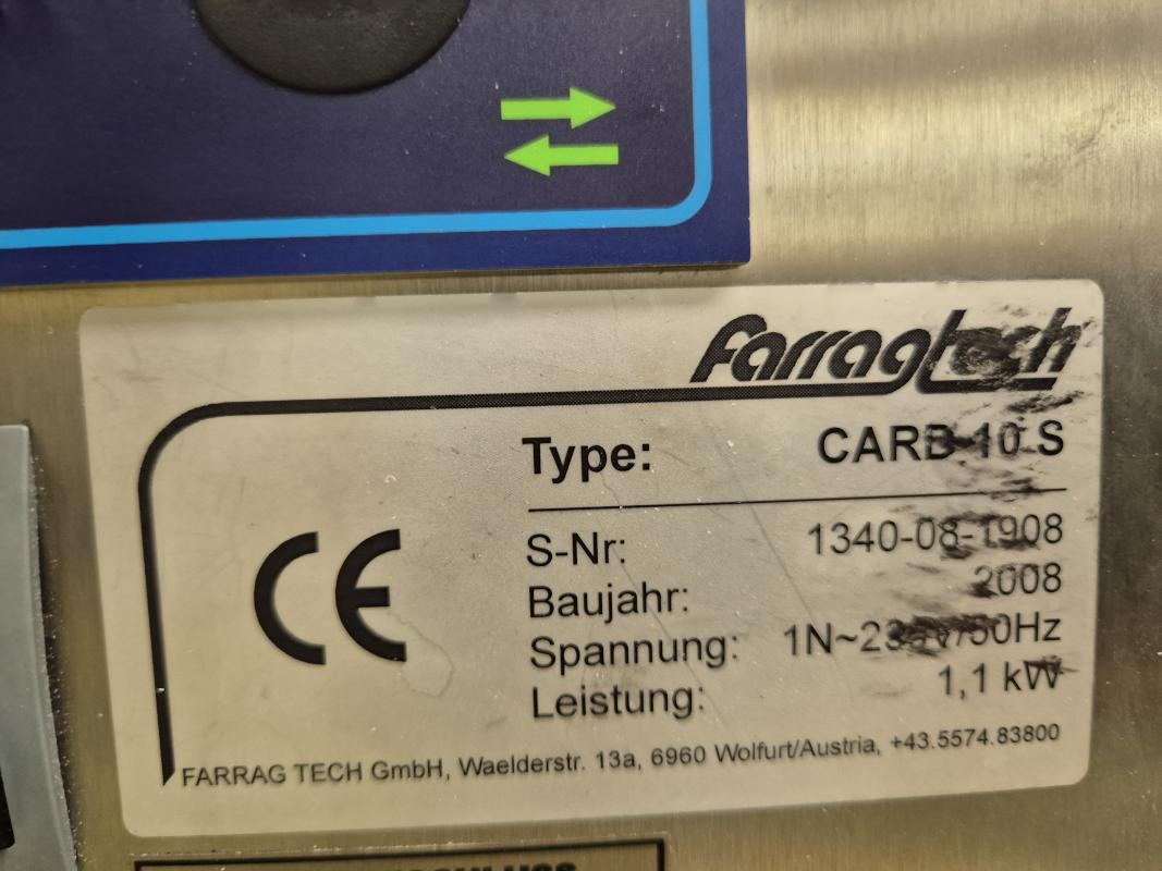 Make: FARRAGTECH, Model: Card 10S, Year of construction: 2008, Serial no. 1340-08-1908, conveyor, made by Varicolor, type Minivac, conveyor belt Elcowa SC02B 1780, 1000 x 200 mm, speed control unit, tool temperature control device serial no. 717-2365, made by HB Therm, type HB-160U1, year of manufacture 2007, heating capacity 8 kW / cooling capacity 30 kW,