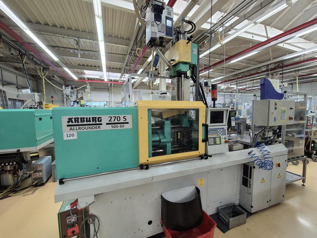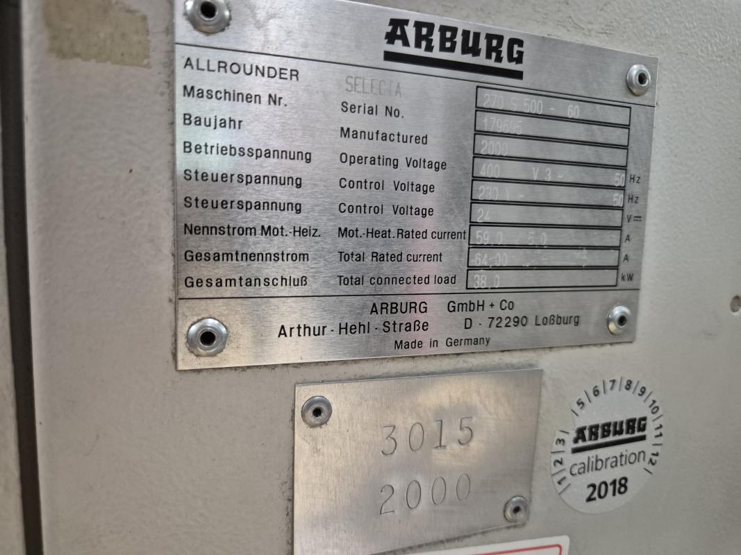 Make: ARBURG, Model: Allrounder 270S-500-60, Year of construction: 2000, Serial no.: 179695, Steuerung, Fabr. Arburg, Typ Selogica, vertikale Spritzeinheit, Schließkraft 500 kN, Handlingsystem Fabr. Geiger, Typ Flexiliner/ Easy Control, Ser.-Nr. 2060904040208, BJ 2004, Schaltschrank