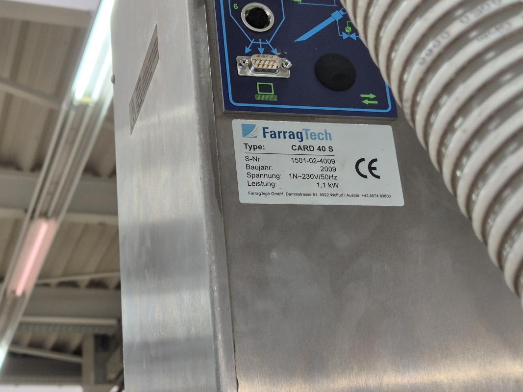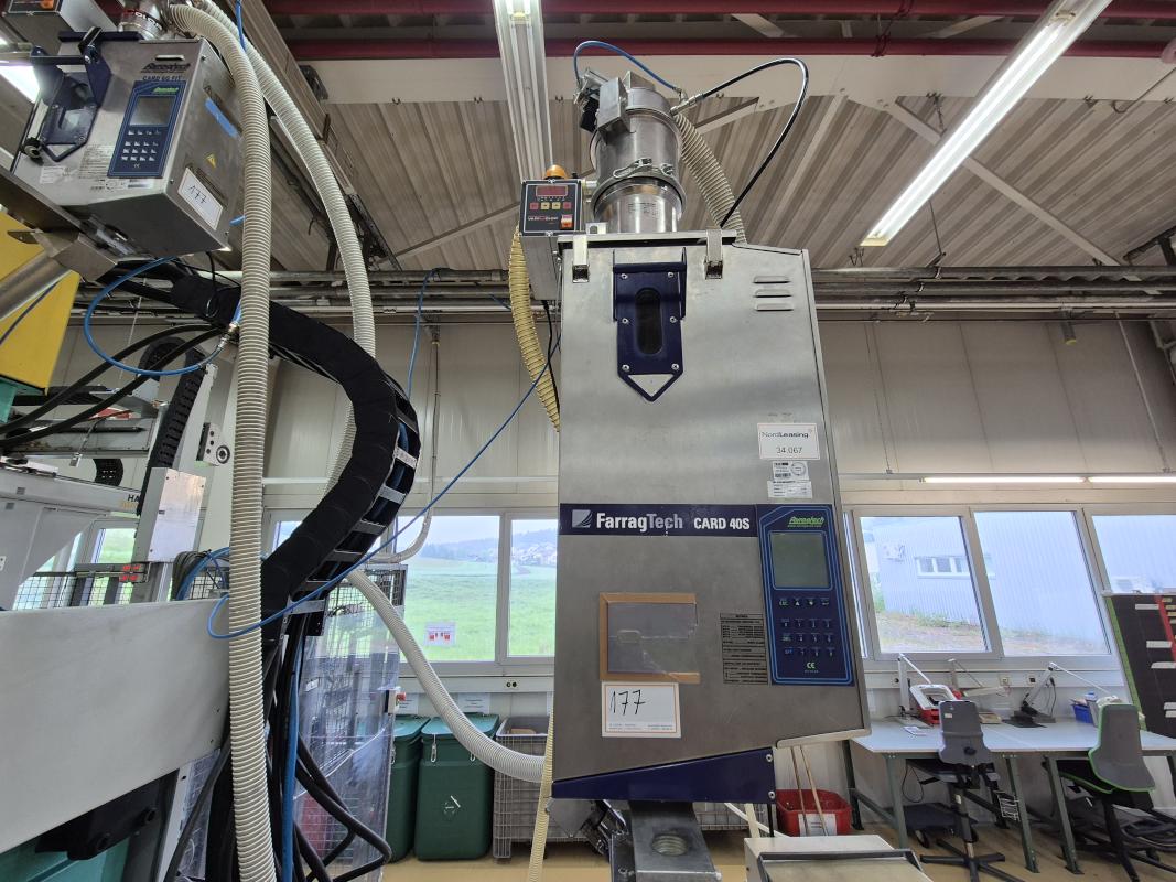Make: FARRAGTECH, Model: Card40S, Year of construction: 2009, 1x attachment dryer serial no. S1501-02-4009, Minivac / MP1 conveyor, built in 2009, 1x Card 6g Fit attachment dryer, Minivac/ MP1 conveyor, 1x color mixing device Control system, manufacturer Siemens, type TD200, built in 2007, 2x Wittmann basic C140 mold temperature control unit, power 10 kW, year of manufacture 2015
