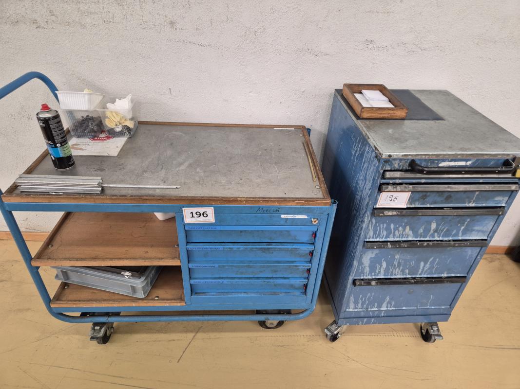Rollable, 1 push bar trolley with drawer cabinet, 5 pull-outs