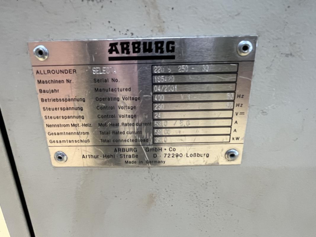 Make: ARBURG, Model: Allrounder 220-S-250-60, Year of construction: 2001, Serial no. 185429, control system, manufacturer Arburg, type Selogica, clamping force 250 kN, screw diameter 18