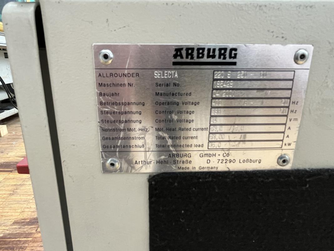 Make: ARBURG, Model: Allrounder 220-S-250-60, Year of construction: 2001, Serial no. 185428, control system, manufacturer Arburg, type Selogica, clamping force 250 kN, screw diameter 18, in storage, pump removed