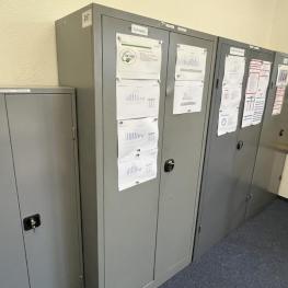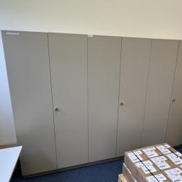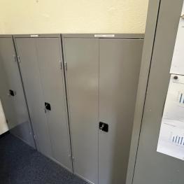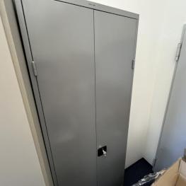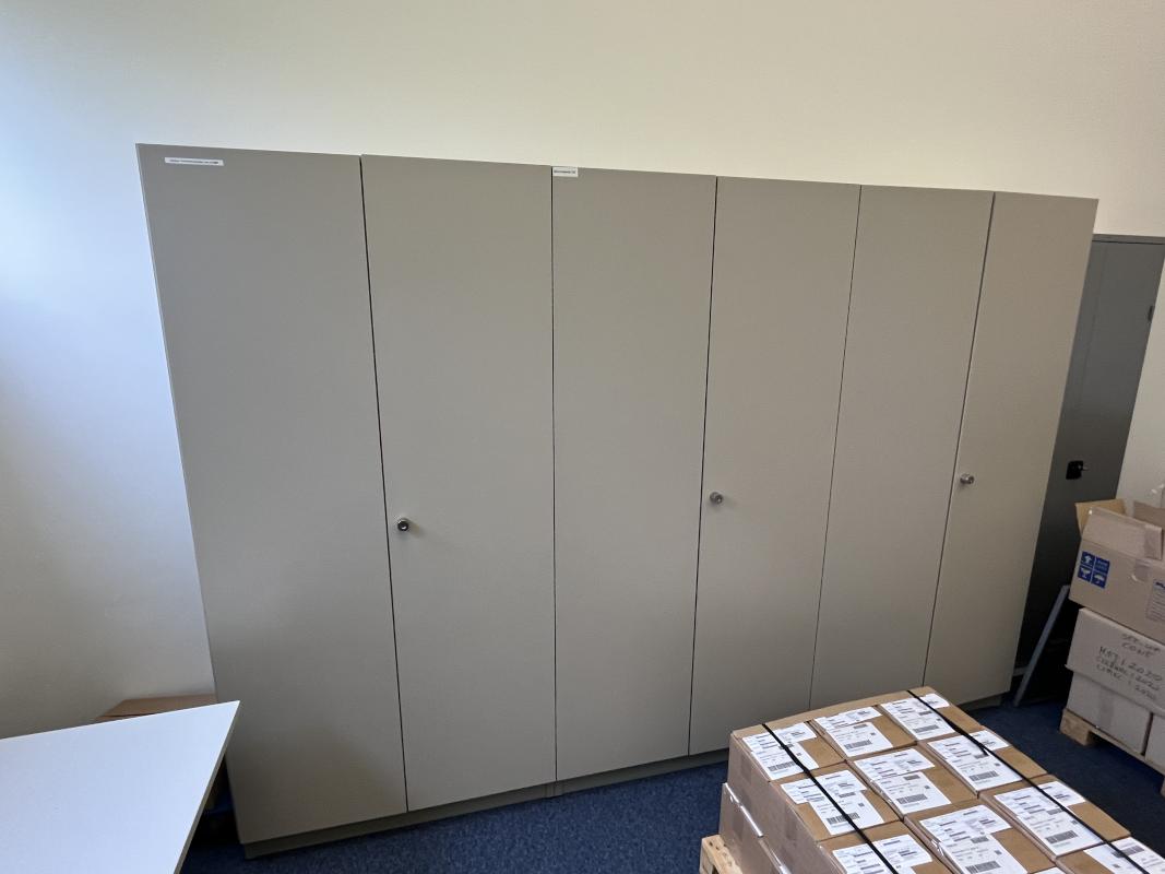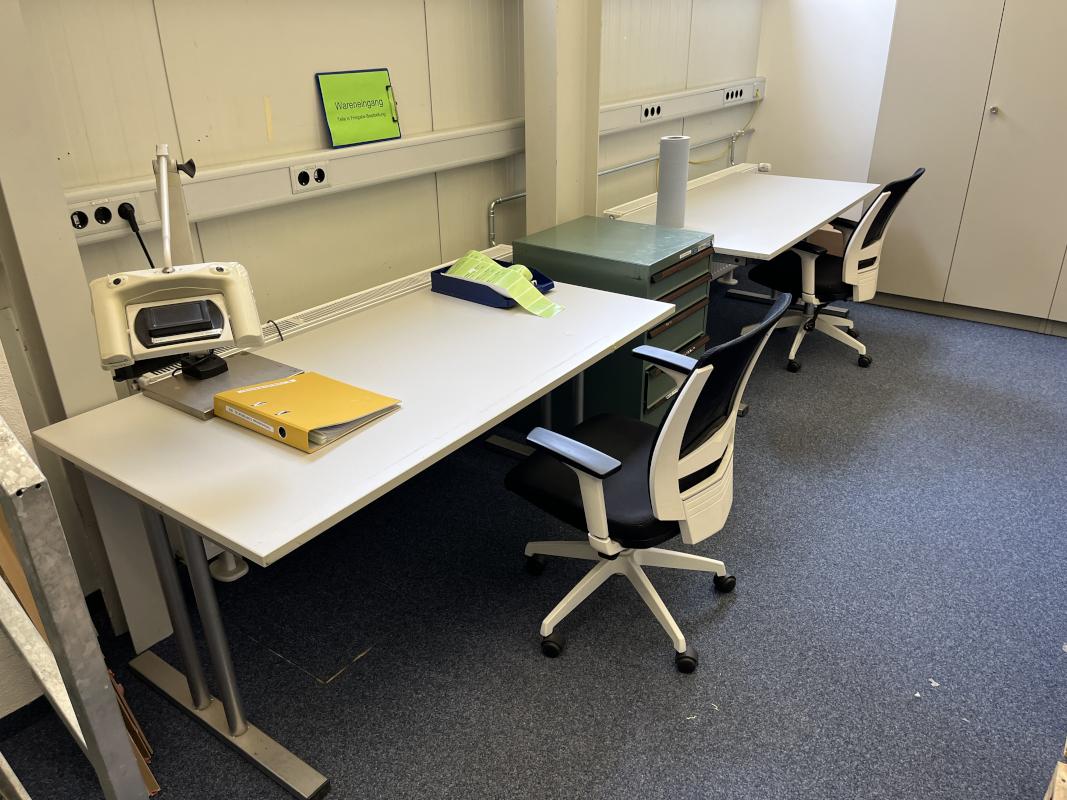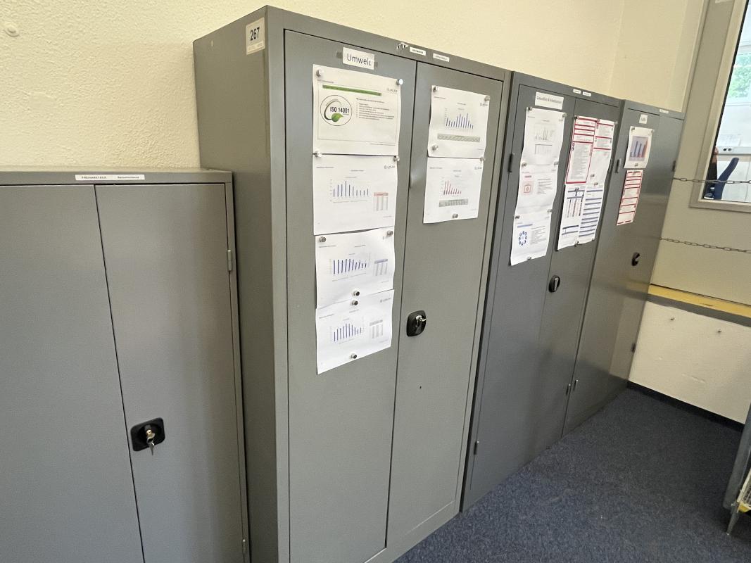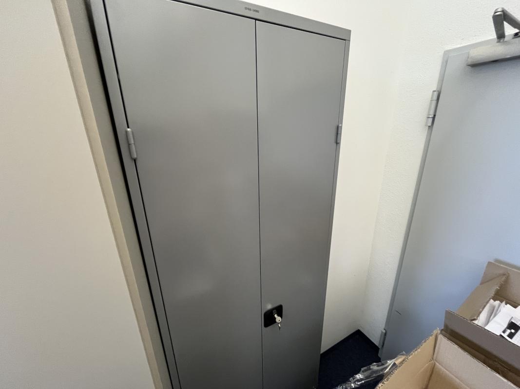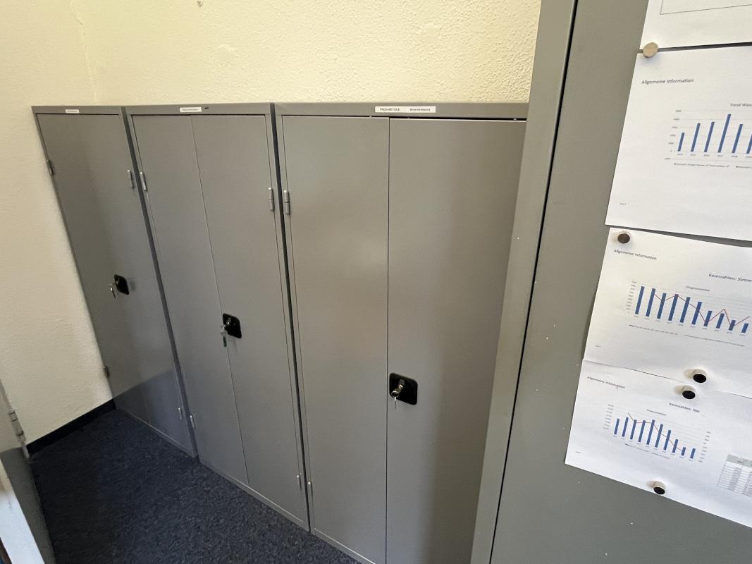Consisting of: 3 double steel cabinets, 4 tool cabinets, metal, 2 doors, 3 storage shelves, metal, 9 levels, 2 office desks, 2 swivel chairs, 1 drawer cabinet, manufacturer Krieg 5 drawers, no contents