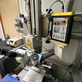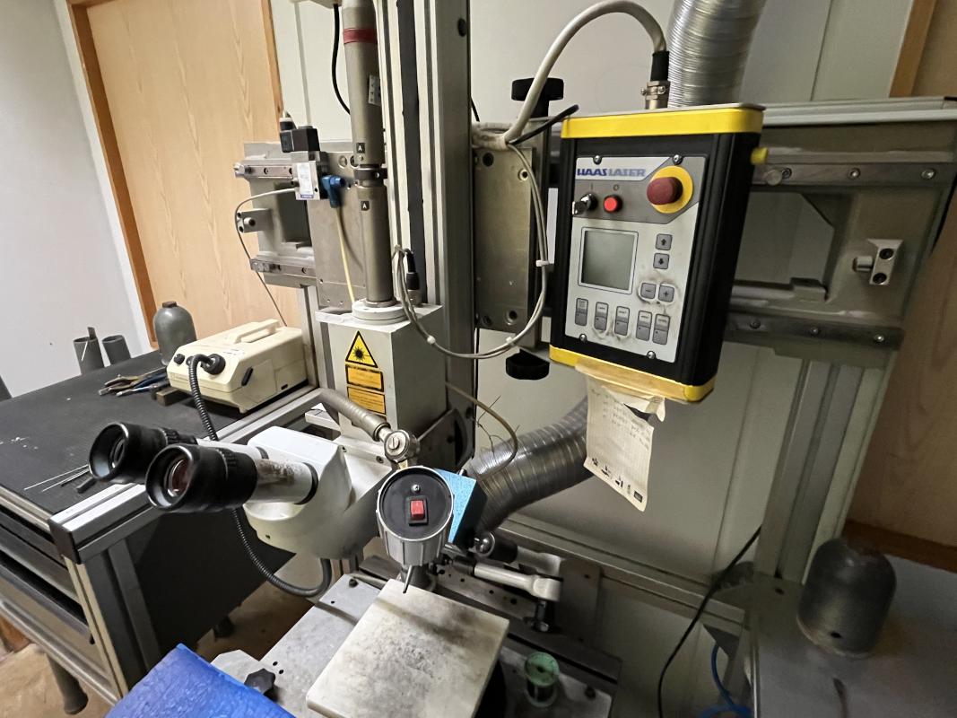 Make: HAAS/TRUMPF, Model: HLP54P, Year of construction: 1996, Serial no. 91649, HAAs laser, welding system incl. stereo microscope, manufacturer Leica, 1 cold light source, manufacturer Schott KL 1500, aluminum frame, movable axes, foot control, adjustable current
