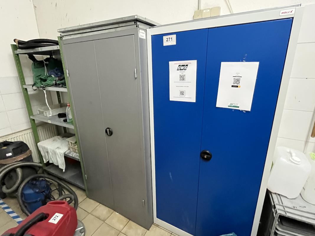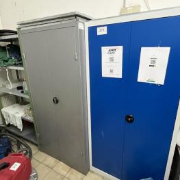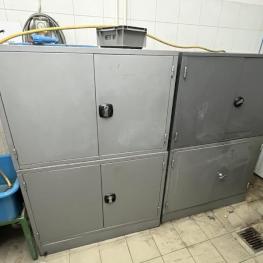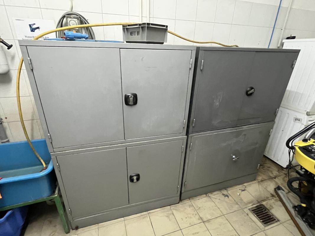 Consisting of: 2 double steel cabinets, storage shelf, metal, plug-in system, 5 levels, 4 tool cabinets, metal, 2 doors