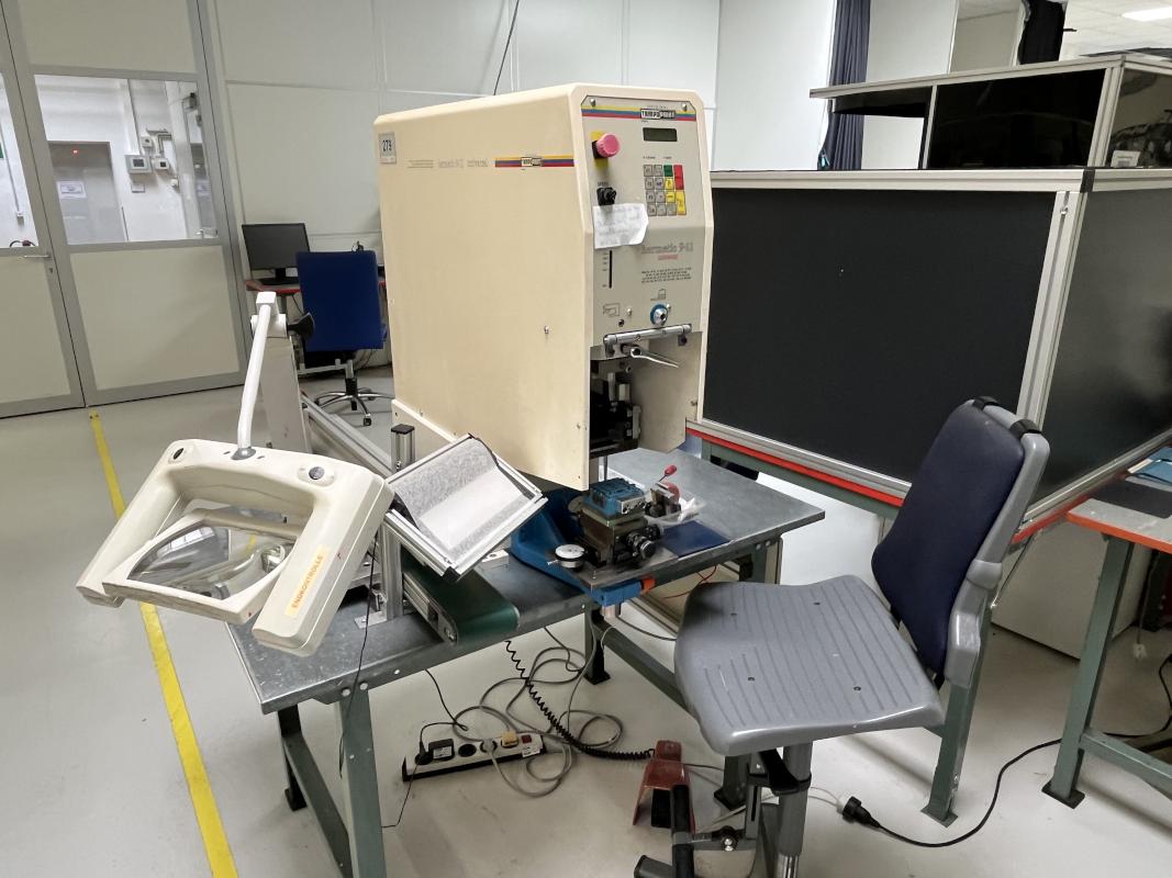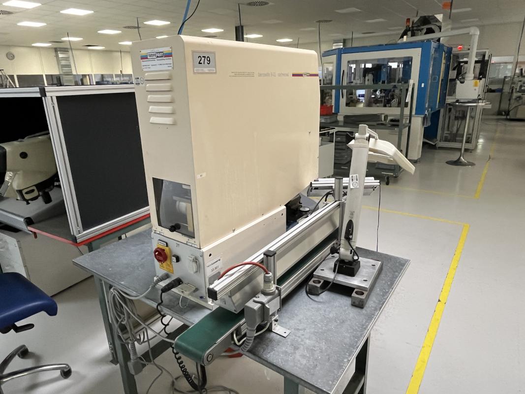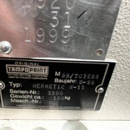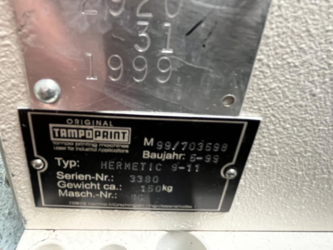Pad printing workstation (31), consisting of: pad printing machine, made by Tampoprint, type Hermetic 9-11, built in 1999, serial no. 3380, work table, magnifying lamp, inspection lamp, powered parts extraction belt, infrared lamp