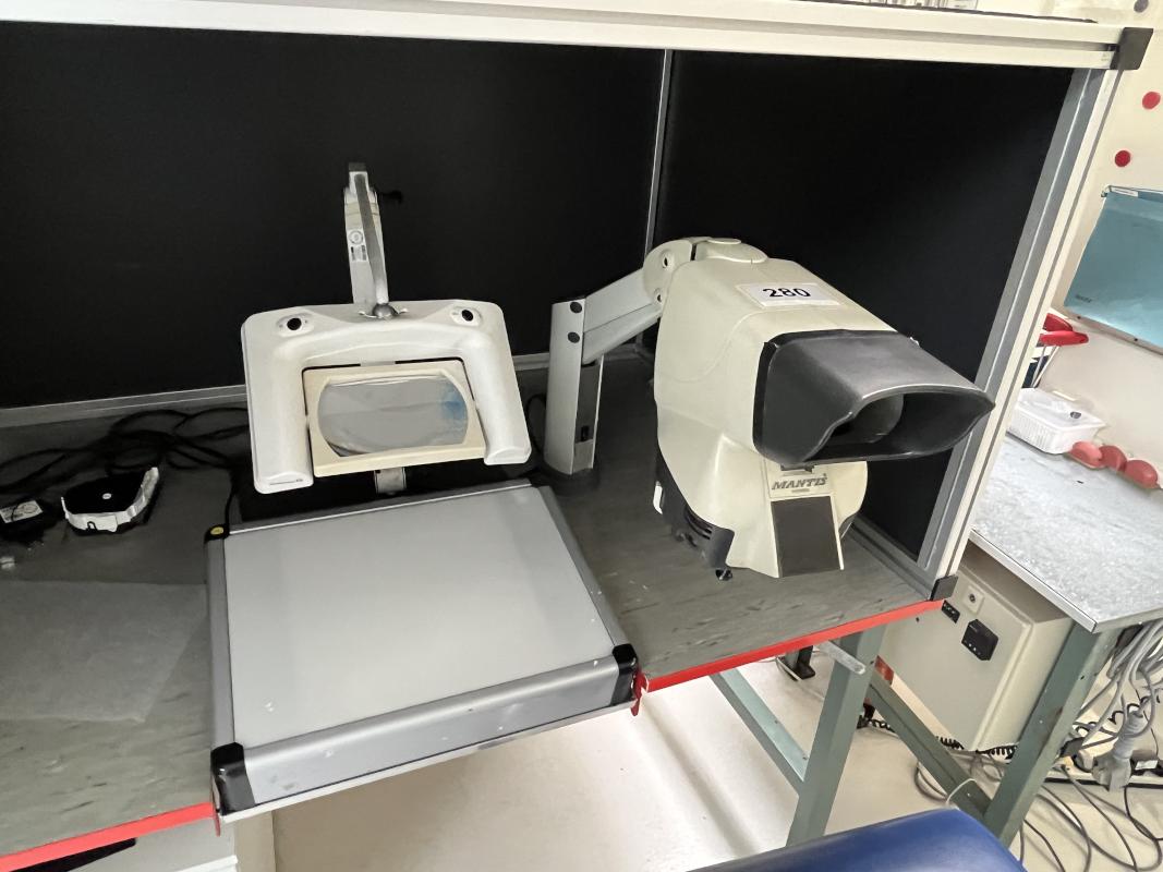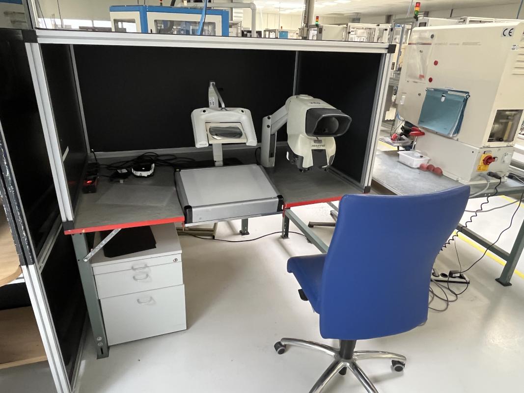 Inspection workstation, consisting of: inspection microscope, manufacturer Vision, type Mantis, light table, magnifying lamp, workstation, enclosure, swivel chair