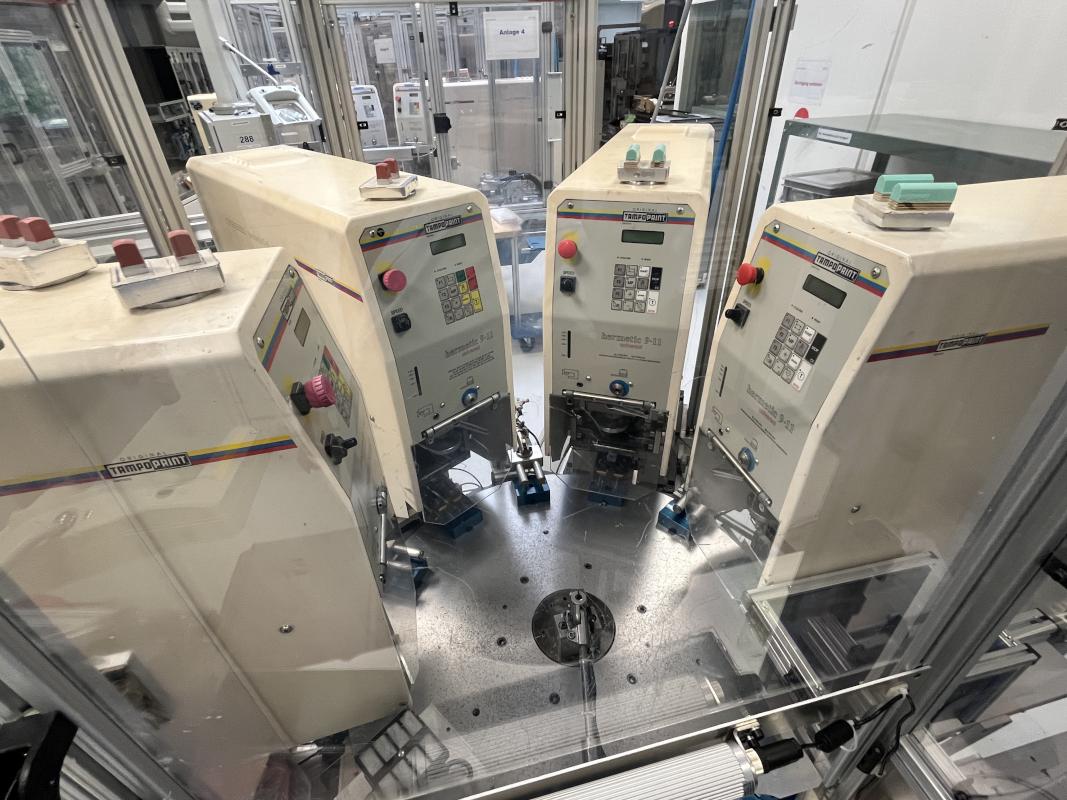 Make: TAMPOPRINT, Model: VAM001321, consisting of: 12-compartment indexing table, 4 pad printing machines, made by Tampoprint, type Hermetic 9-11, built in 1997, work table, magnifying lamp, control system, made by Siemens, type Simatic Panel, test lamp, 2 accessory cabinets,