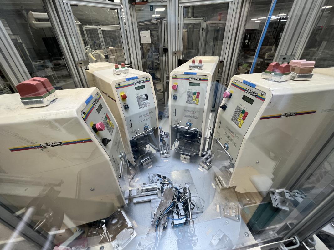 Make: TAMPOPRINT, Model: VAM001321, consisting of: 12 indexing tables, 4 pad printing machines, manufacturer: Tampoprint, type: Hermetic 9-11, year of manufacture: 1999, parts removal conveyor, work table, control system, manufacturer: Siemens, type: Simatic Panel, test lamp
