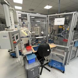 Make: TAMPOPRINT, Model: VAM001321, consisting of: 12 indexing plates, 3 pad printing machines, made by Tampoprint, type Hermetic 9-11, built in 2007, pneumatic press, pad printing machine, made by Tampoprint, type HER6-12, built in 2008, Keyence camera unit, removal robot handling, serial no. 2353, built in 2007, work table, magnifying lamp, control system, manufacturer Siemens, type Simatic Panel, Hirata tray destacking system