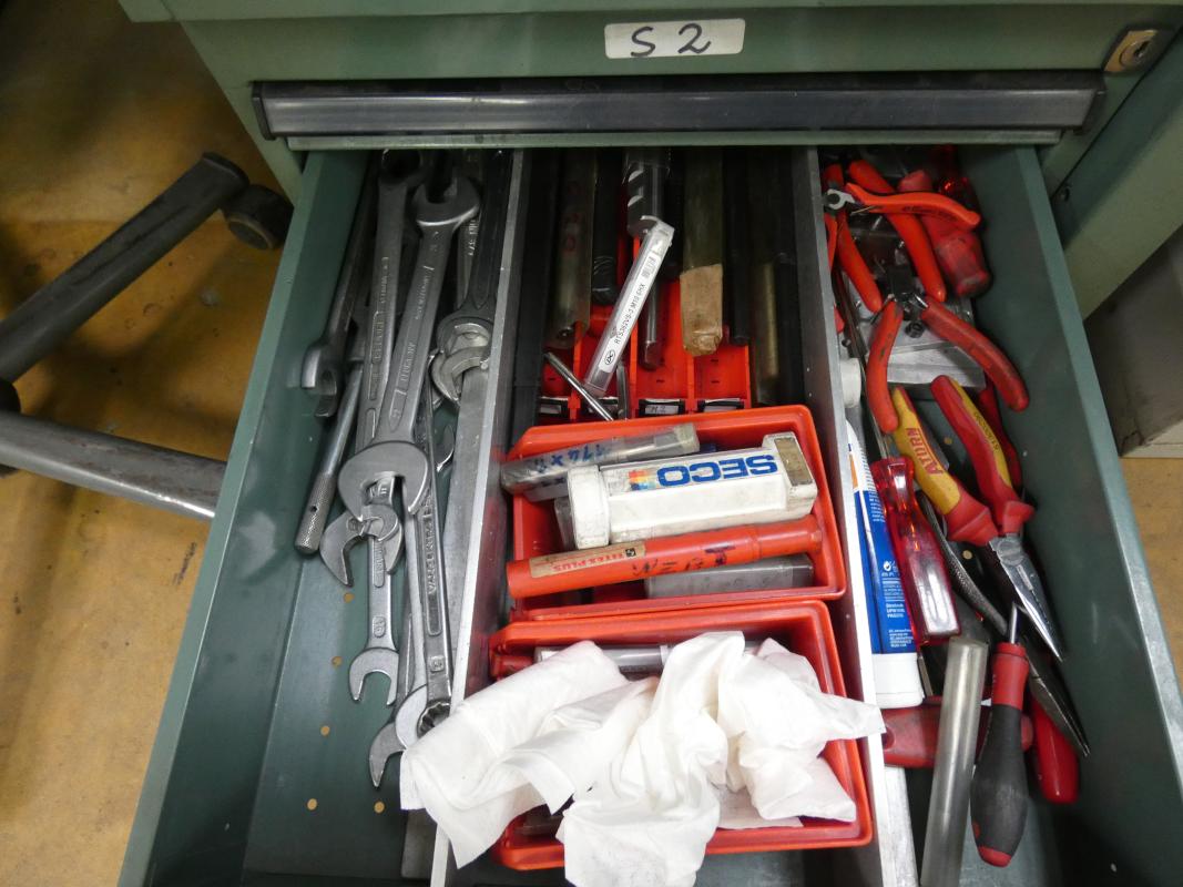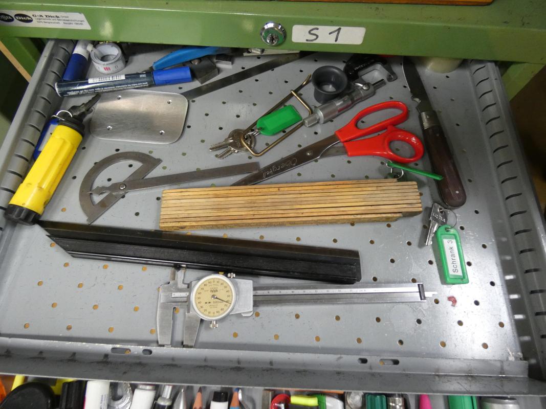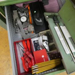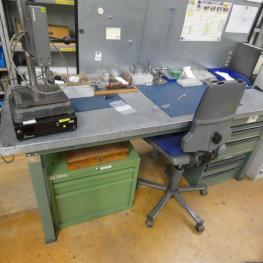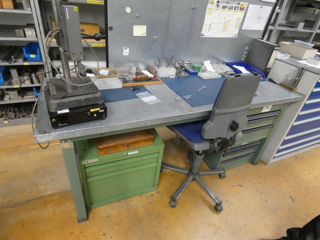 consisting of: workbench, base, work table, small vise, dial gauge incl. stand, measuring device, manufacturer Heidenhain type 300.103, hand tools, drills, various measuring instruments, pin gauge sets, swivel chair