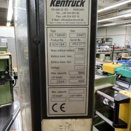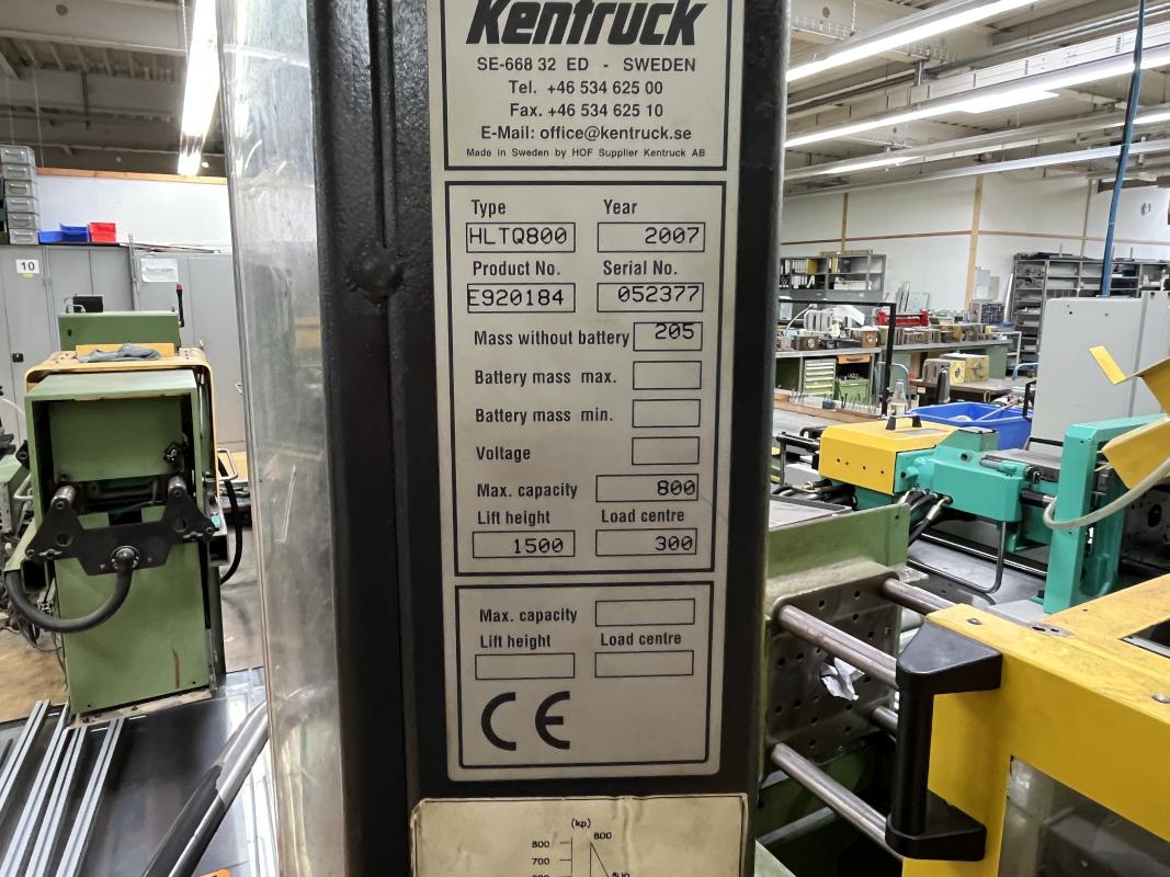 Make: KENTRUCK, Model: HLTQ800, Year of construction: 2007, Serial no. 052377, load capacity 800 kg, lift height 1,500 mm, table size 530 x 600 mm