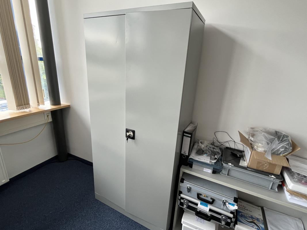 2 steel cabinets, 2 doors, gray, approx. 900 x 450 x 1,700 mm, without contents