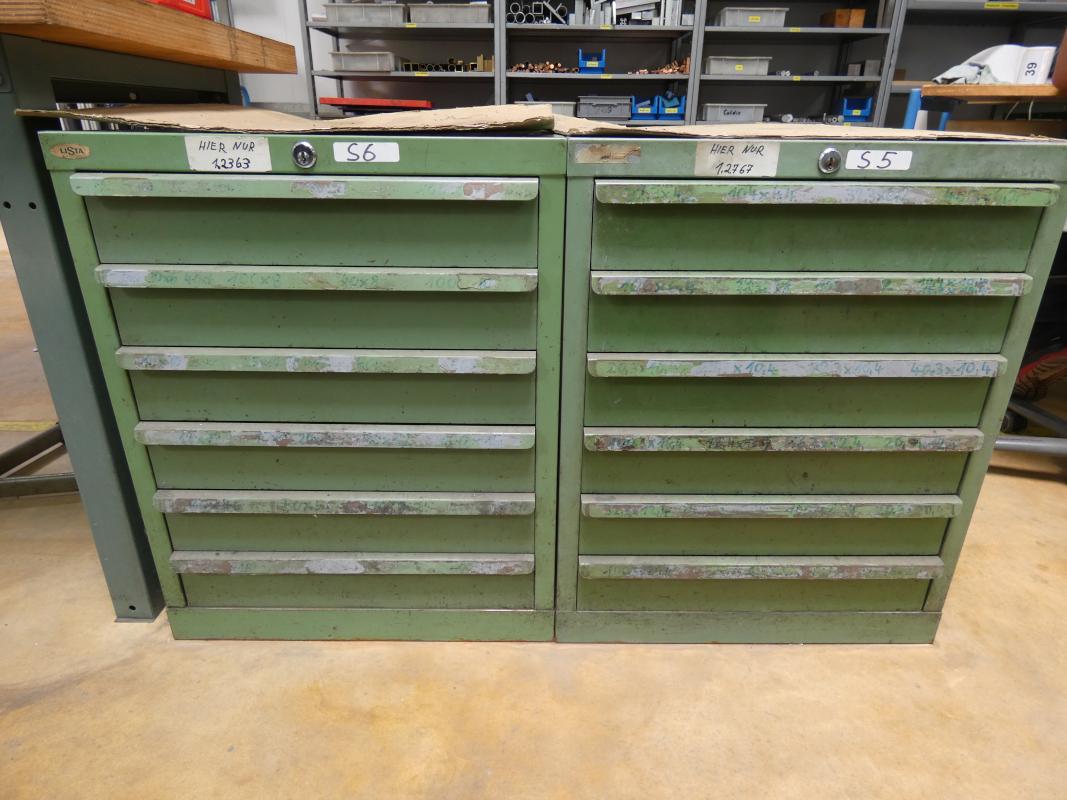 Make: KRIEG / LISTA, Consisting of: 1 Krieg workbench incl. drawer base with 4 pull-outs, 2 Lista drawer cabinets, each with 6 pull-outs