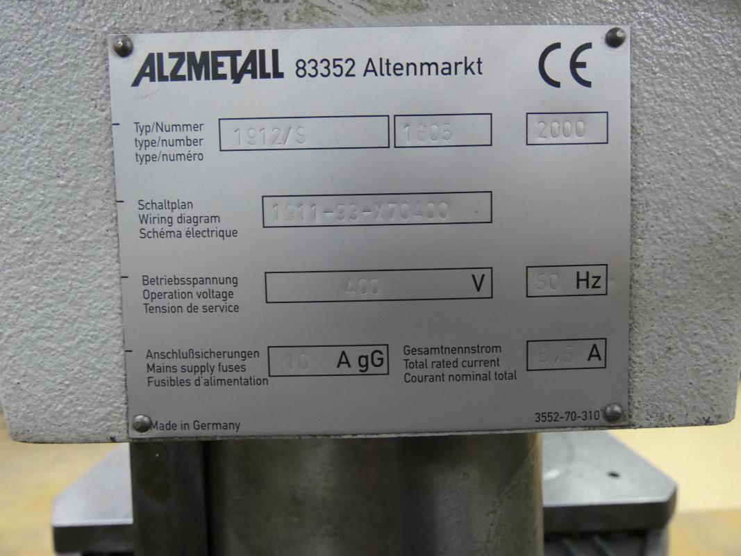 Make: ALZMETALL, Model: Alzstar 40 1912/S, Year of construction: 2000, Serial no. 1805, max. speed 2830 rpm, machine vice, foot control, table size 500x400mm, manually height-adjustable, outfeed approx. 280mm, work table 3 drawers