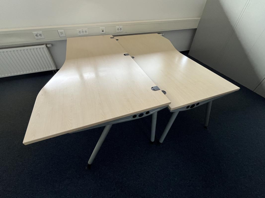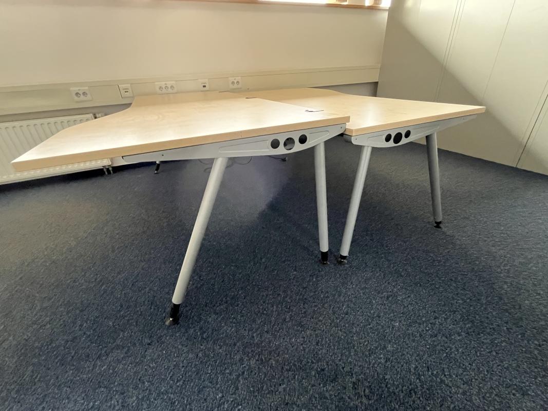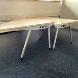 2 pieces, gray metal frame, freeform wooden tabletop, mechanically height-adjustable, width approx. 2000mm
