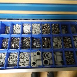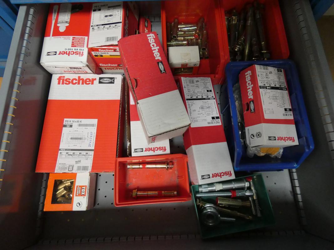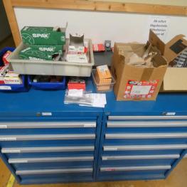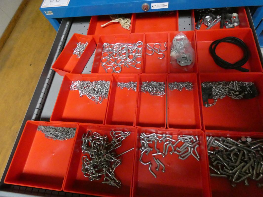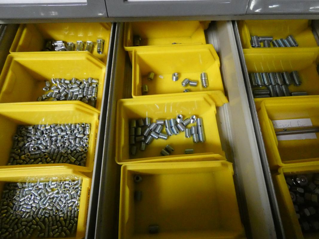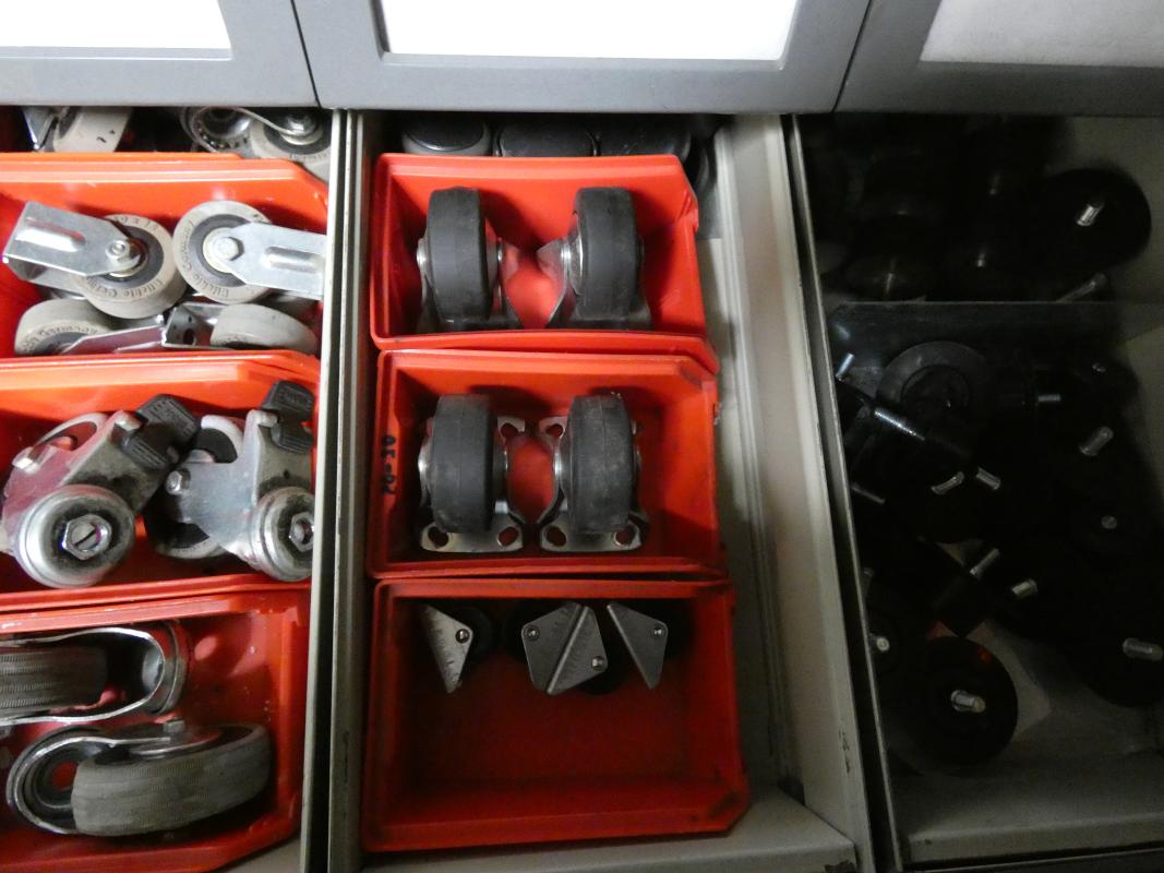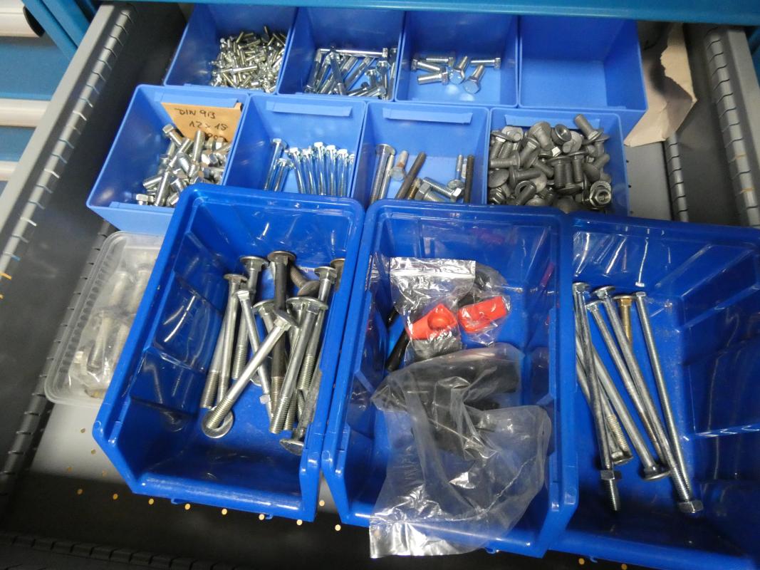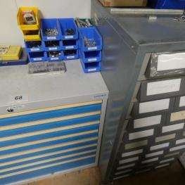 2x Lista W/D/H 720x720x1000mm, 6 drawers each, 1x Bedrunka & Hirt W/D/H 980x500x1020mm 8 drawers, 1x manufacturer Risto W/D/H 730x660x1370mm 11 drawers, contents: Cabinet cable glands, plastic/metal blind plugs BG8-BG28, copper sealing rings, Usit rings, DIN screws, electrical consumables, circuit breakers 10A-16A 1-pole-3-pole, LH fuses, plug joints, spring pliers, machine accessories, head bolts, rollers