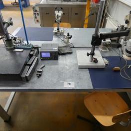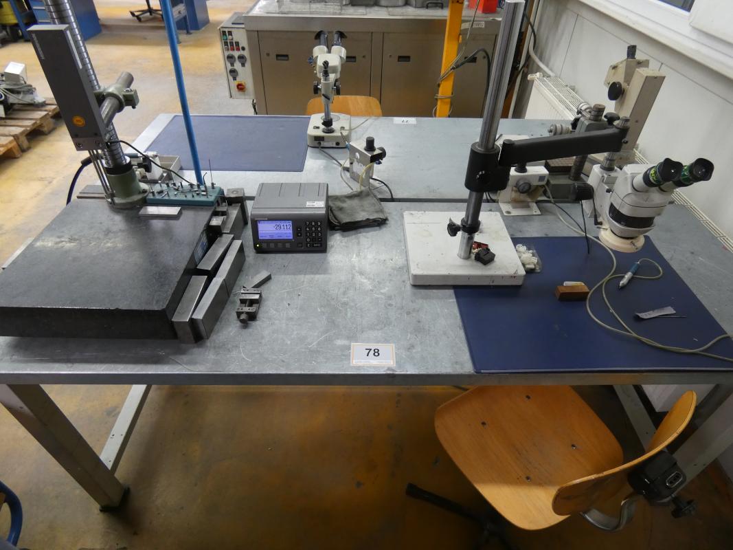 consisting of: work table with sheet metal cover, granite measuring plate 400 mm x 500 mm, with height gauge, manufacturer Heidenhain, digital display, various measuring inserts Stereomicroscope, pneumatic grinder, manufacturer Joke, work chair