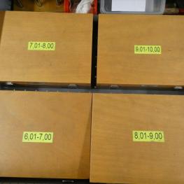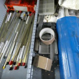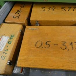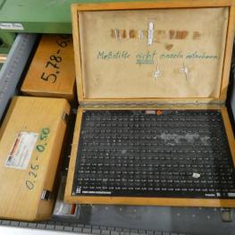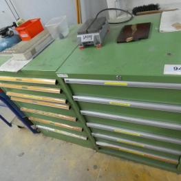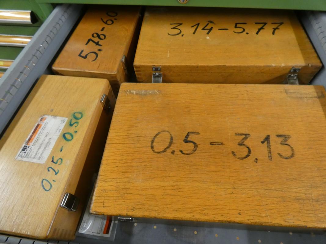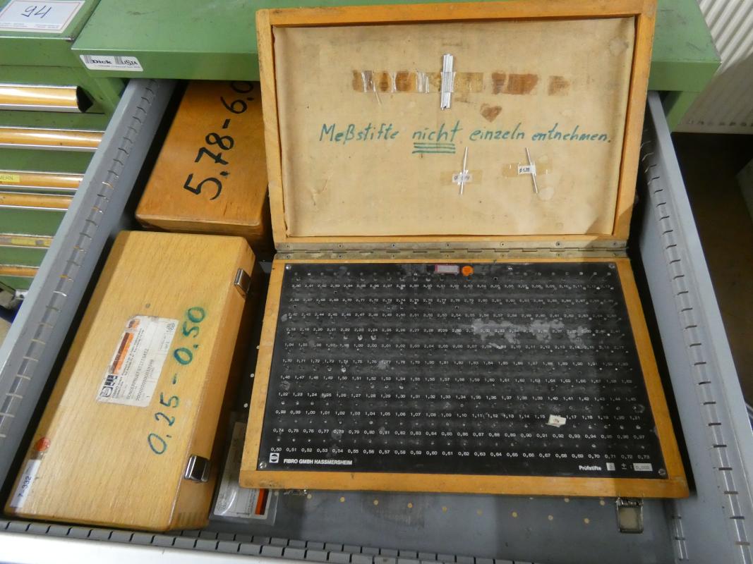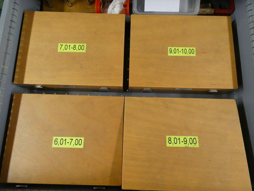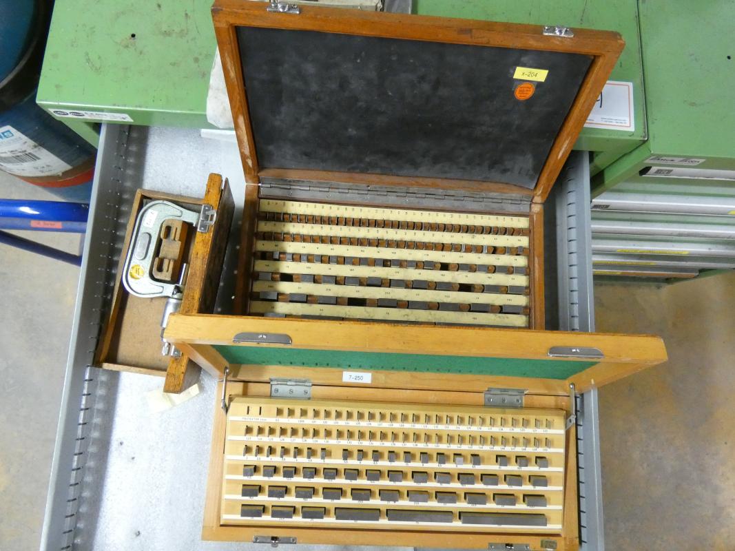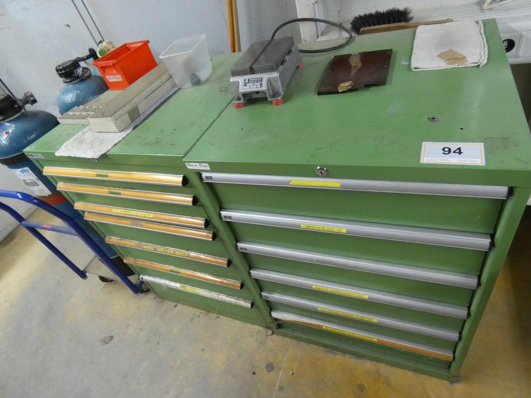 Make: LISTA, W/D/H approx. 720x725x1000mm, 1x 6 drawers, 1 x 7 drawers, contents: gauge block set 7mm-250mm, fitting pins 0.5mm-3.13mm / 3.14mm-5.77mm / 5.78mm-6.0mm (not complete), gauge block set Veit DIN861 0.5mm-100mm, Star hole electrodes, Wagner type 2111520 demagnetization device, 150 mm x 200 mm