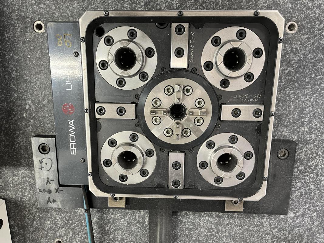 Make: EROWA / ZIMMER & KREIN, Consisting of 2x base plates, 9 pallets, approx. 80 Erowa holders in various designs, hydraulic lift table, rail system for Erowa quick clamping system