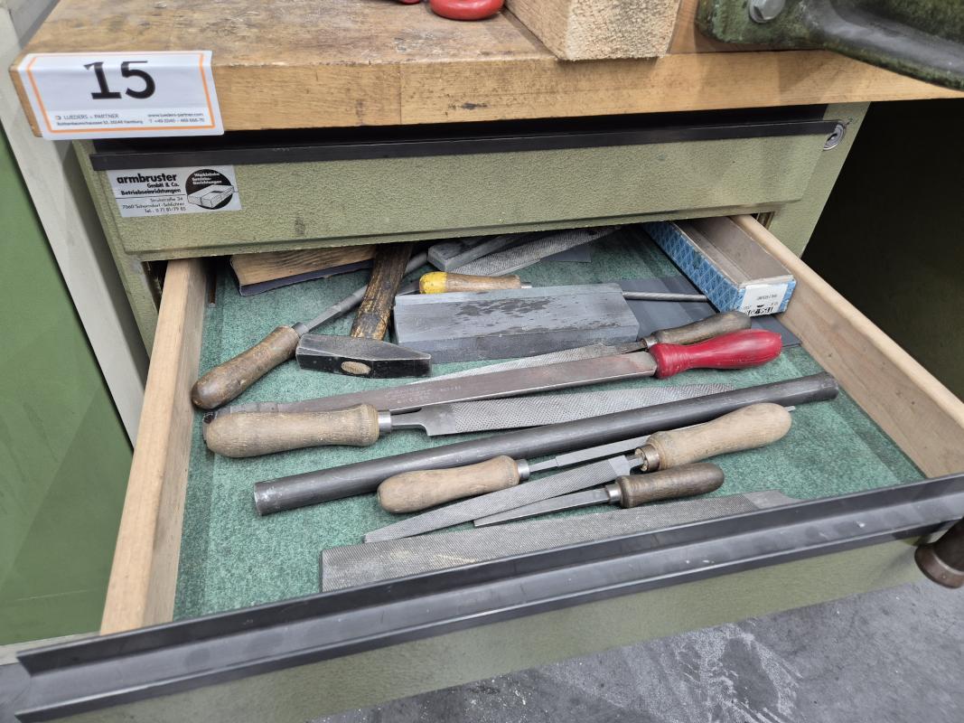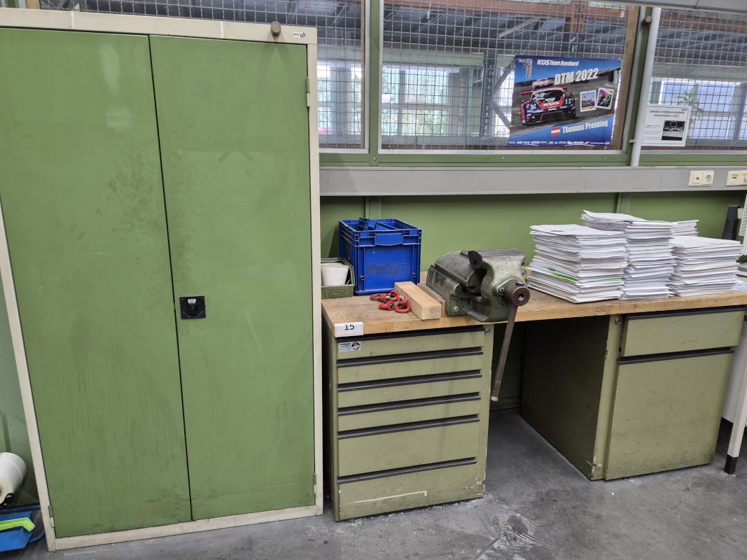 Holz/ Metall, Schraubstock, Inhalt: Handwerkzeug, Zubehör,2 Werkzeugschränk, 2-türig, Metall