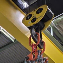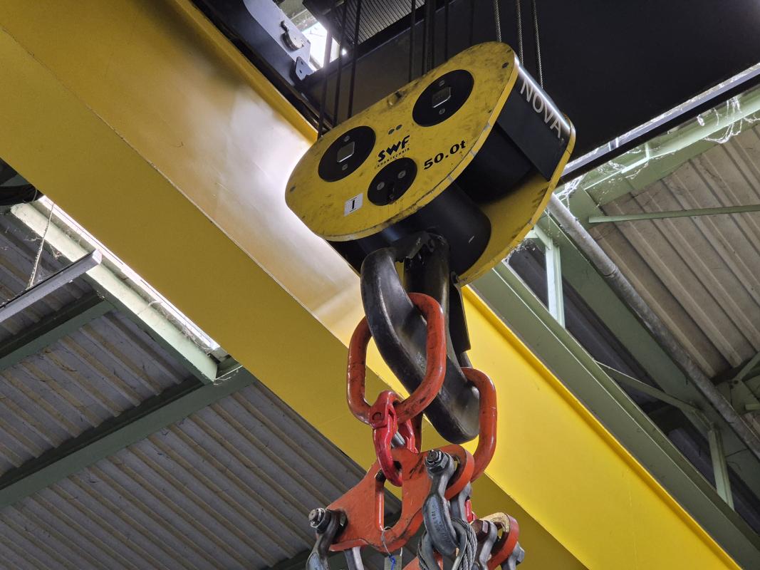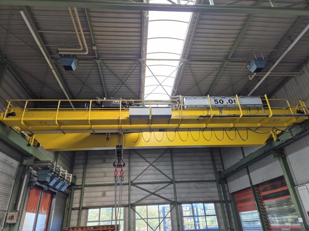 Make: TAUCHER, Tragfähigkeit max. 50 t, Spannweite 17 m, Funkfernsteuerung