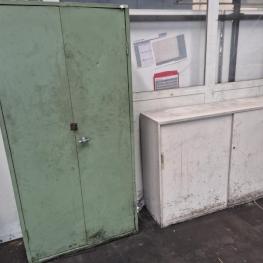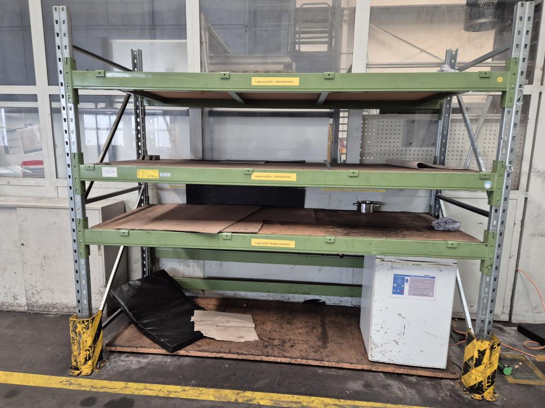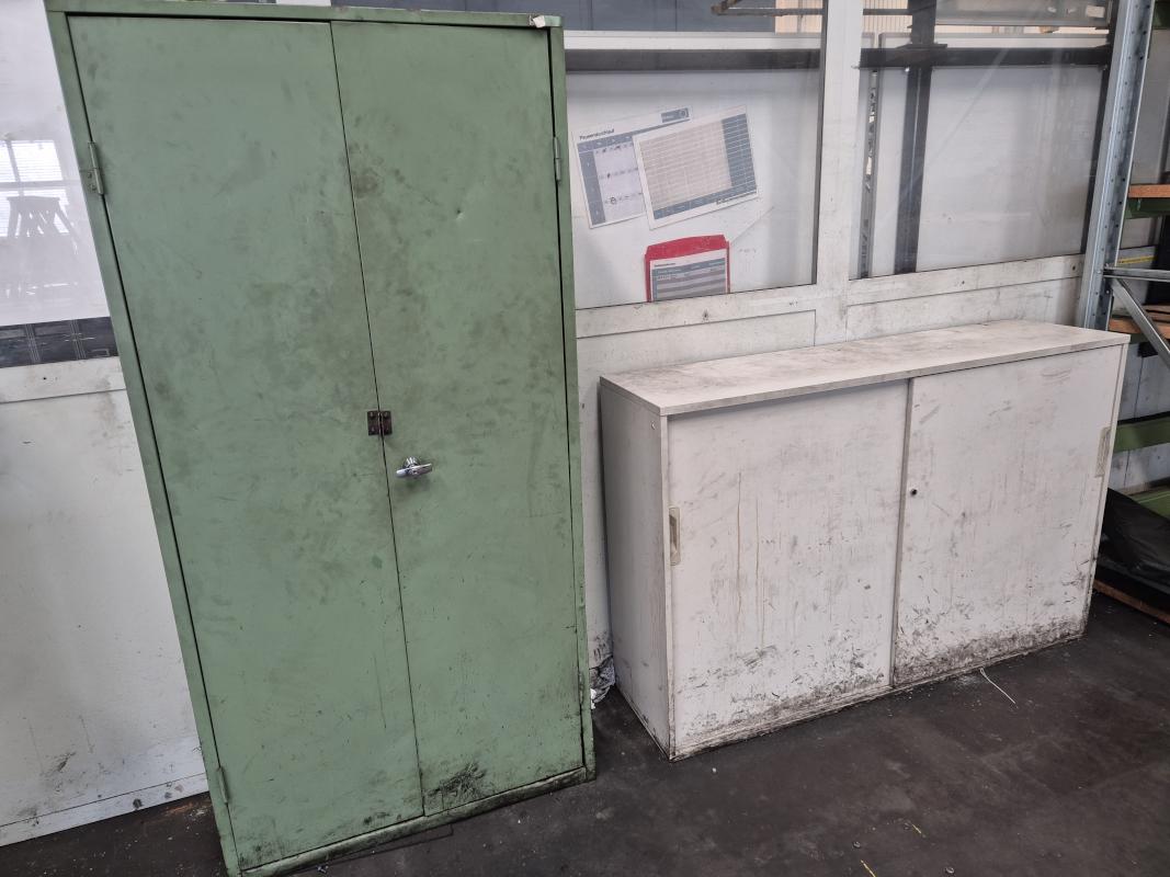 1 unit, 3 levels, bay width approx. 1,900 mm, upright height approx. 2,000 mm, 1x metal cabinet W/D/H approx. 1,000 x 350 x 1,900 mm, 2-door, 1x sideboard, 2 sliding doors