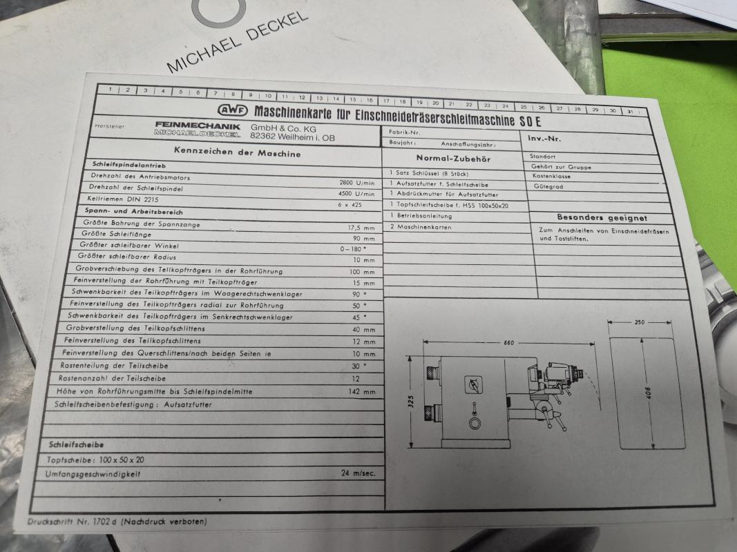 Make: MICHAEL DECKEL, Model: SOE, Speed max. 4,500 rpm, clamping sleeves