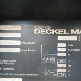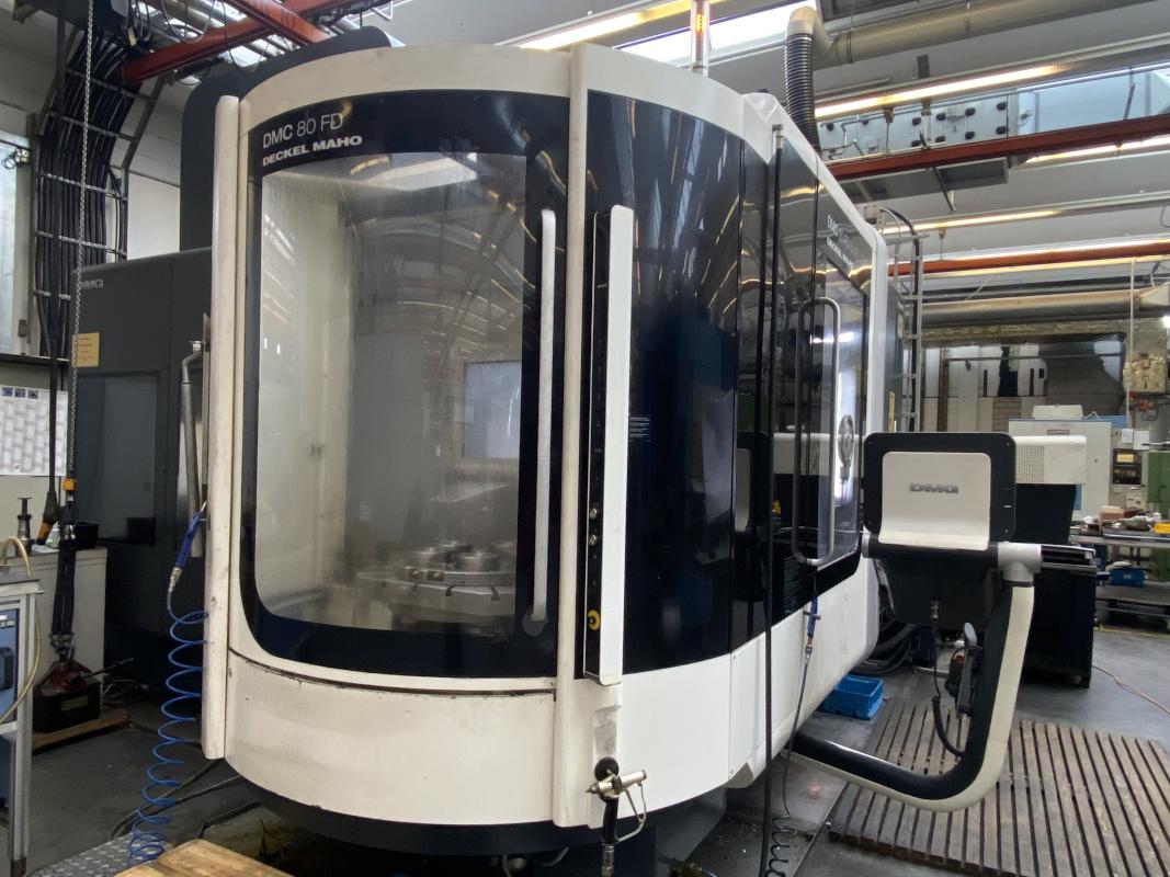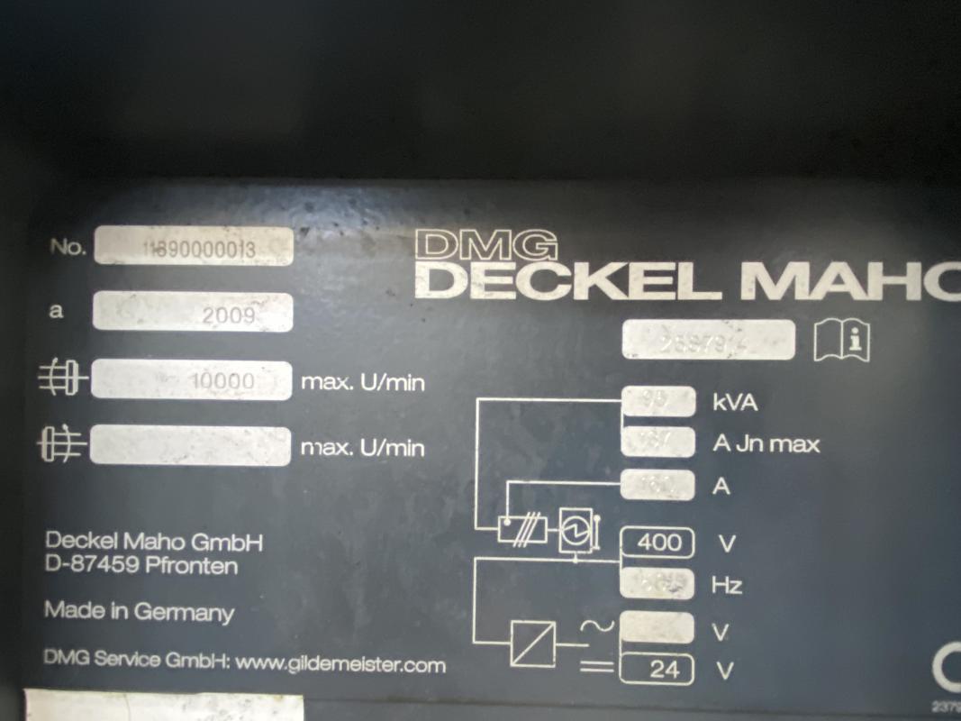 Make: DECKEL MAHO, Model: DMC 80 FD duoBLOCK, Year of construction: 2009, Serial no. 11890000013, control, manufacturer Siemens, type Sinumerik 840D solutionline, operating station /EERGOline, 5 axes, NC swivel milling head (B axis)