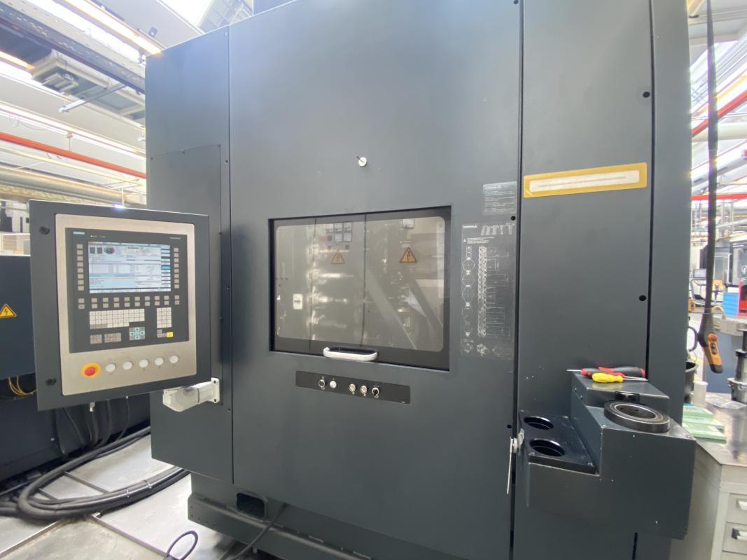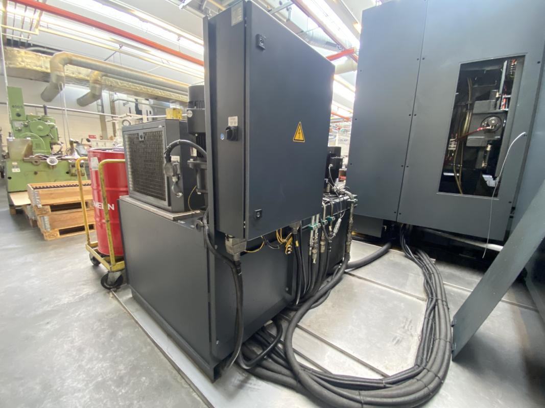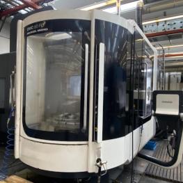 NC milling rotary table (C axis) Travel range X/Y/Z 800 x 1,050 x 800 mm, spindle speed max. 10,000 rpm, spindle power 44 KW, 2-fold pallet changer, pallet size 800 x 630 mm, FD turning option, speed 800 rpm, torque 3,400 Nm, 120-fold tool changer, tool holder HSK100, MPC machine protection control, tool breakage monitoring, 3D quick set, measuring probe, manufacturer Heidenhain, type TS 649, IKZ 40 bar, belt filter, coolant temperature control, oil cooler, chip conveyor, cabin, interior lighting, operating hours 29,656/76,337