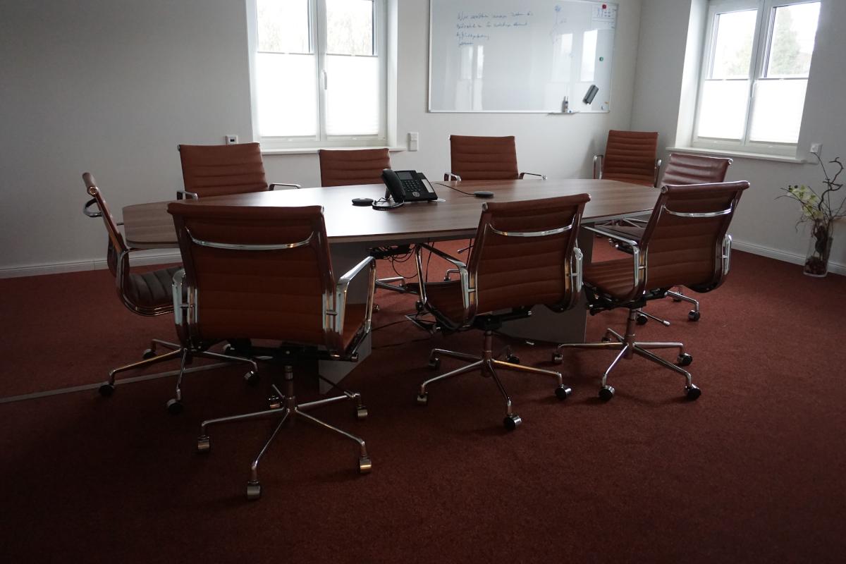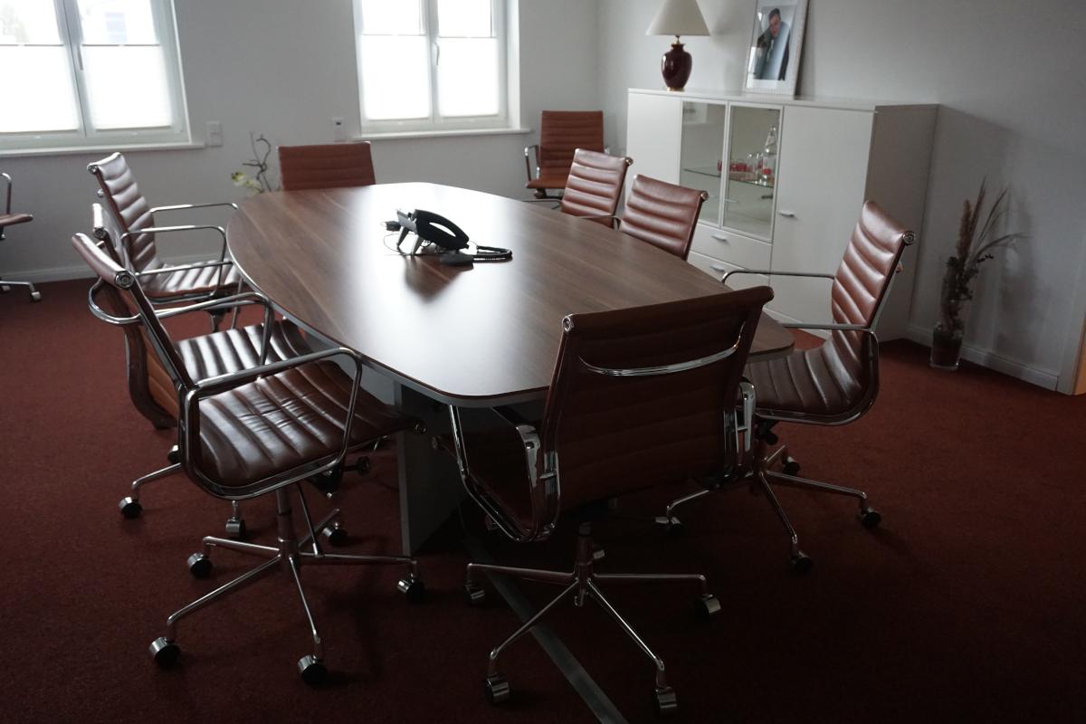 Consisting of: large table, oval, 3,000 x 1,200 mm, 10 chairs, Vitra, sideboard 1,000 x 1,400 mm (sale without IT equipment)