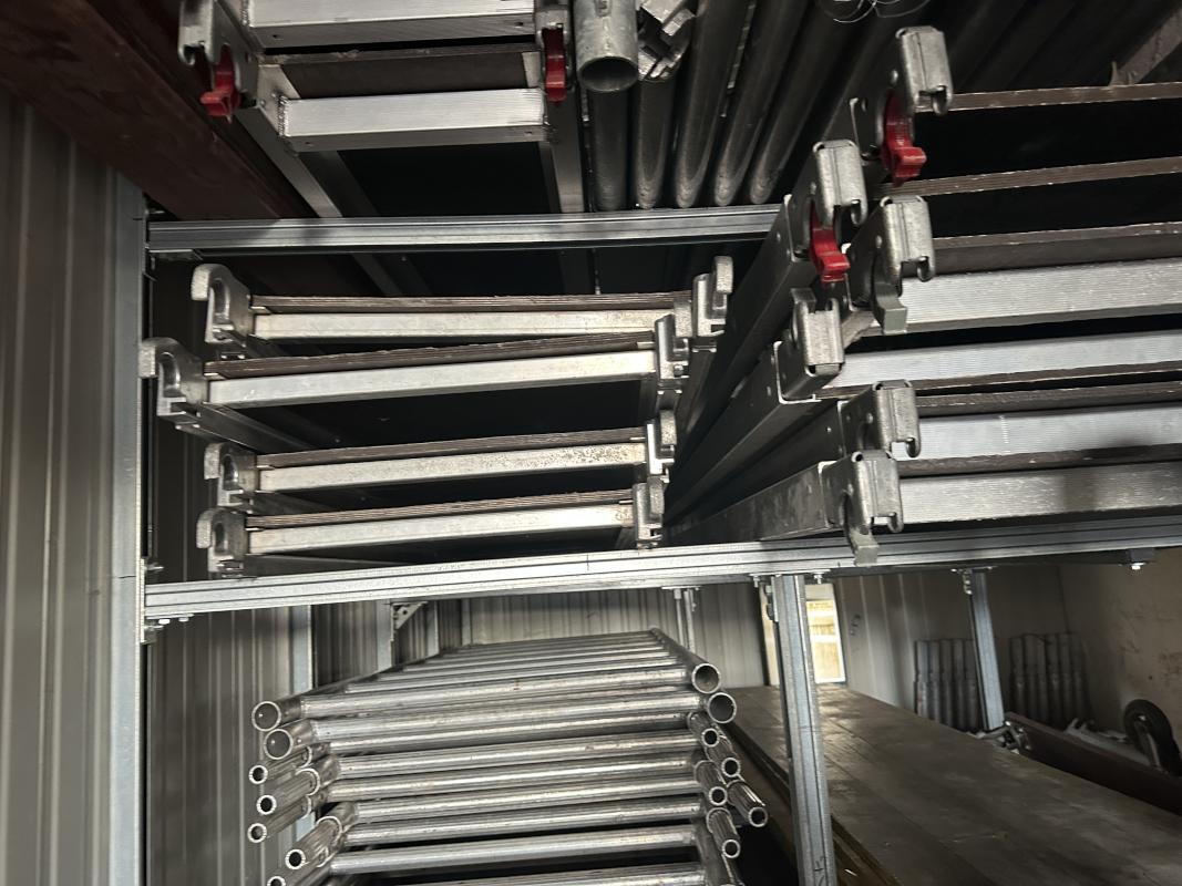 W 2,500 mm, H approx. 8,000 mm, aluminum rolling scaffold, dimensions approx. 3,000 x 3,000 mm, H up to 8,000 mm