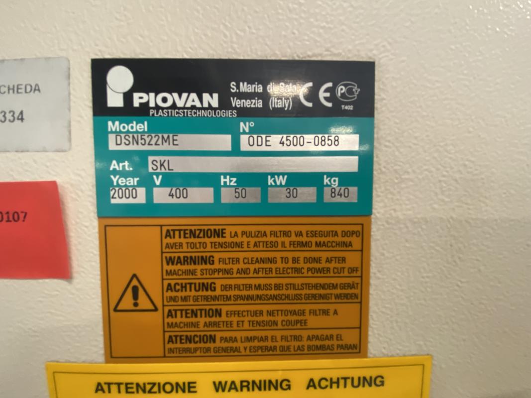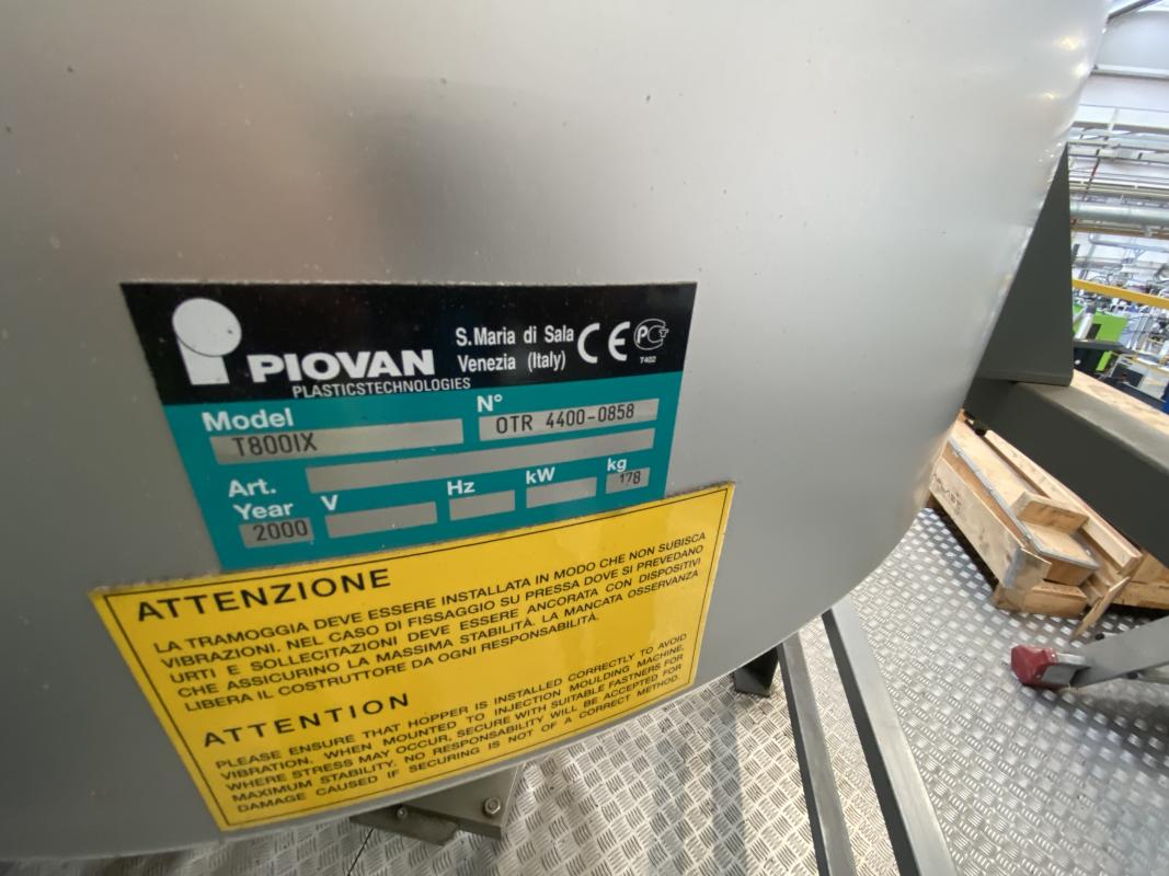 Make: PIOVAN, Model: DSN522ME, Year of construction: 2000, Serial no. 4500-0858, microprocessor control, 2 drying cylinders, type T800IX, 2 conveyors, manufacturer Piovan, type C30IX