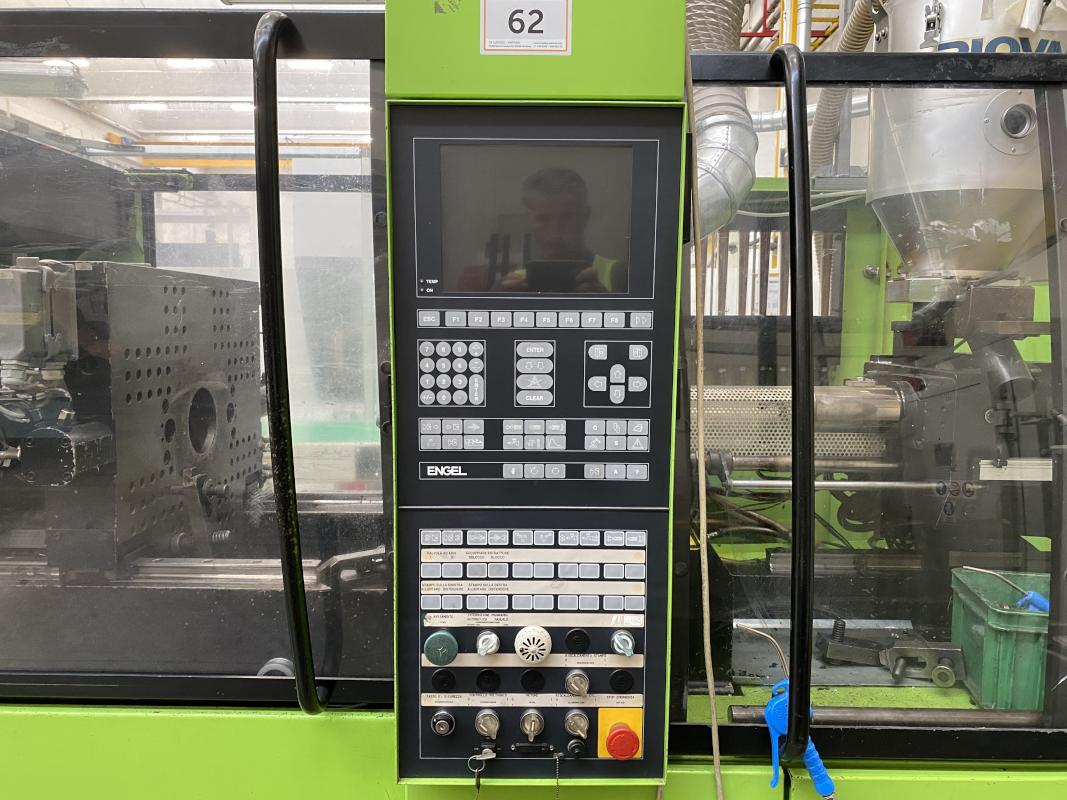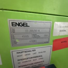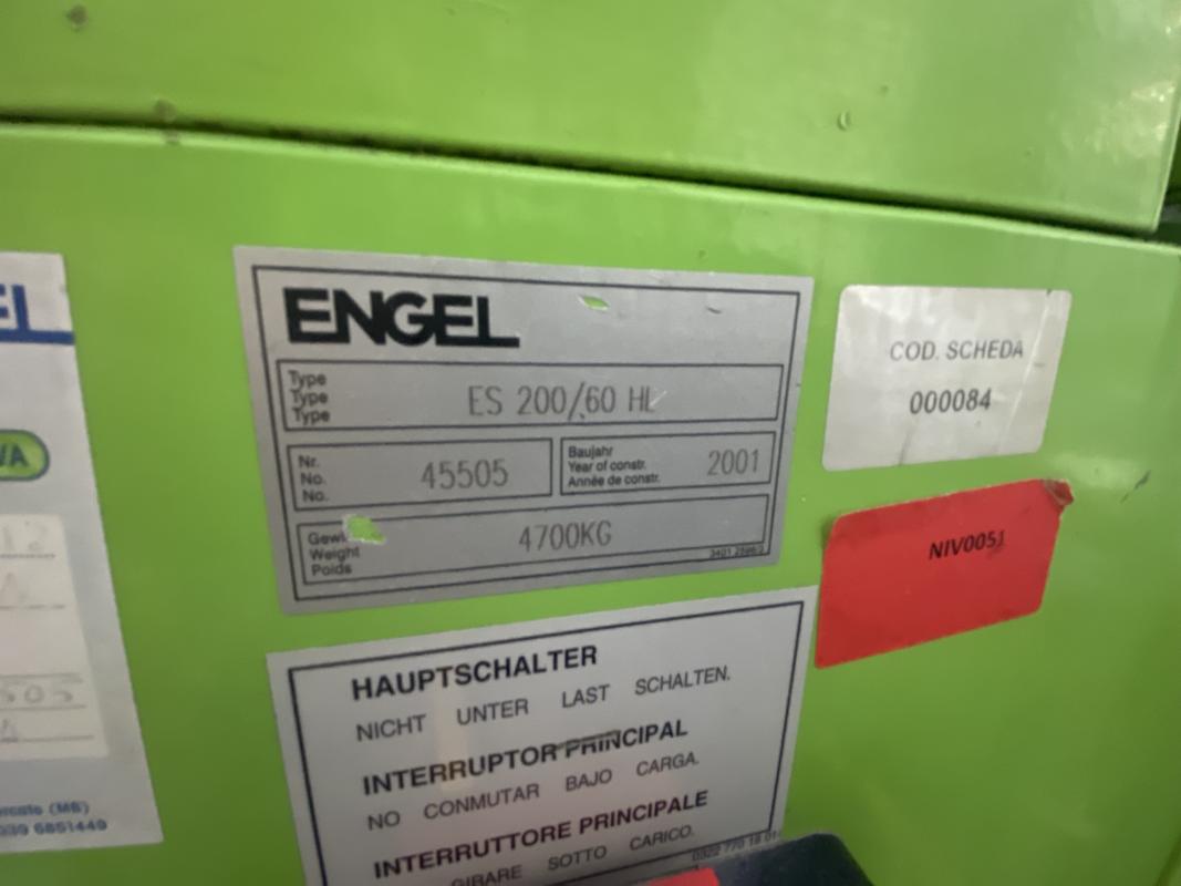 Make: ENGEL, Model: ES200/60HL, Year of construction: 2001, Serial no. 45505, Engel CC100 control system, clamping force 60 t, tie-bar-less, screw diameter 25 mm, max. shot weight 59 g, removal robot, manufacturer Piovan, type T-1000EP, built in 2003, belt conveyor Virginio PNL 5, 3,000 x 600 mm, Piovan DPA 10C dryer, Piovan C31X conveyor