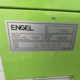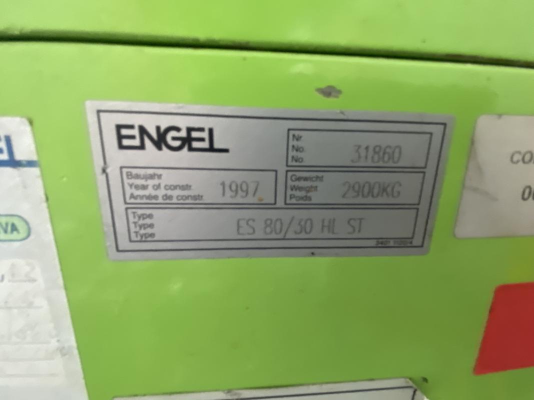 Make: ENGEL, Model: ES80/30HLST, Year of construction: 1997, Serial no. 31860, control system, manufacturer Engel, type CC100, clamping force 30t, tie-bar-less, screw Ø 18 mm, shot weight max. 22 g, Z-conveyor belt