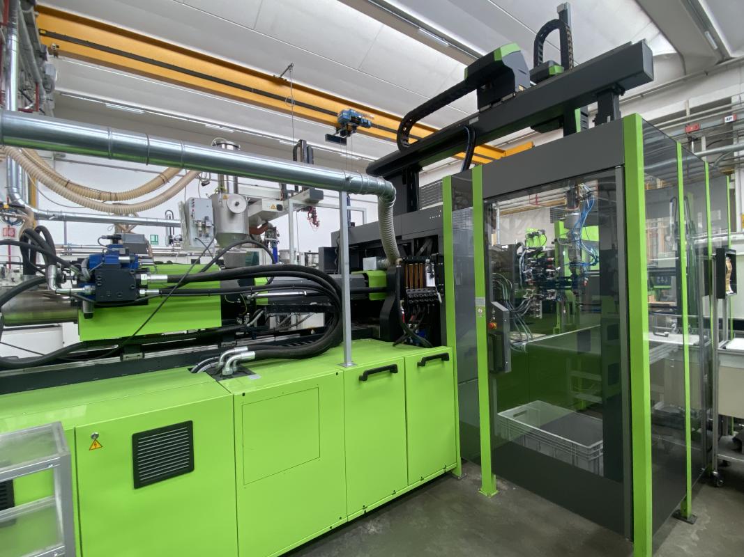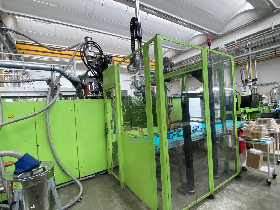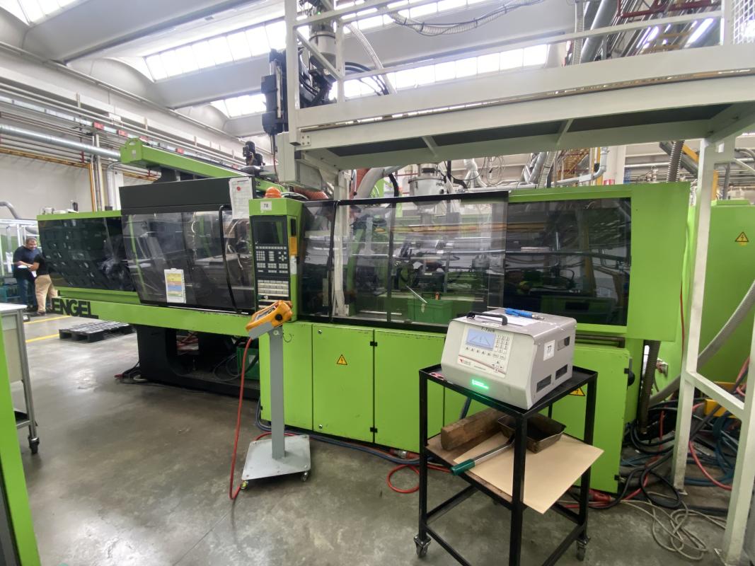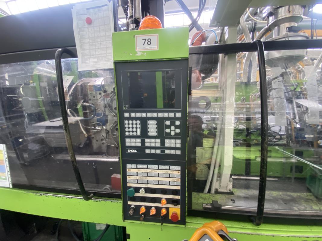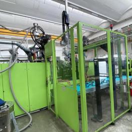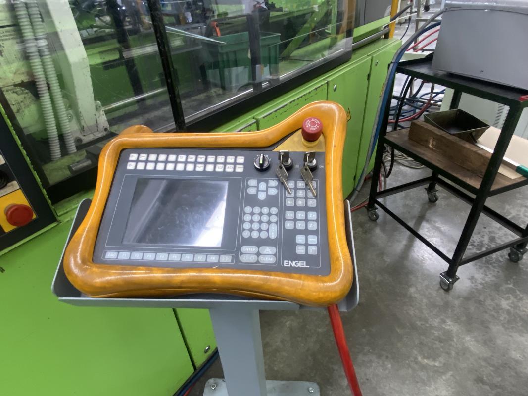Make: ENGEL, Model: ES1050H330V/175HL-2F, Year of construction: 1996, serial no. 9763, control system, manufacturer Engel, type CC100, 2 injection units, clamping force 175 t, tie-bar-less, rotary table, screw Ø 50/35 mm, shot weight max. 380/140 g, suction conveyor, manufacturer Piovan, removal robot, manufacturer Engel, type ERC, belt conveyor, manufacturer MB