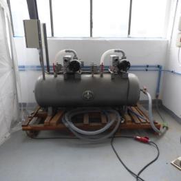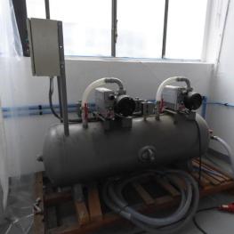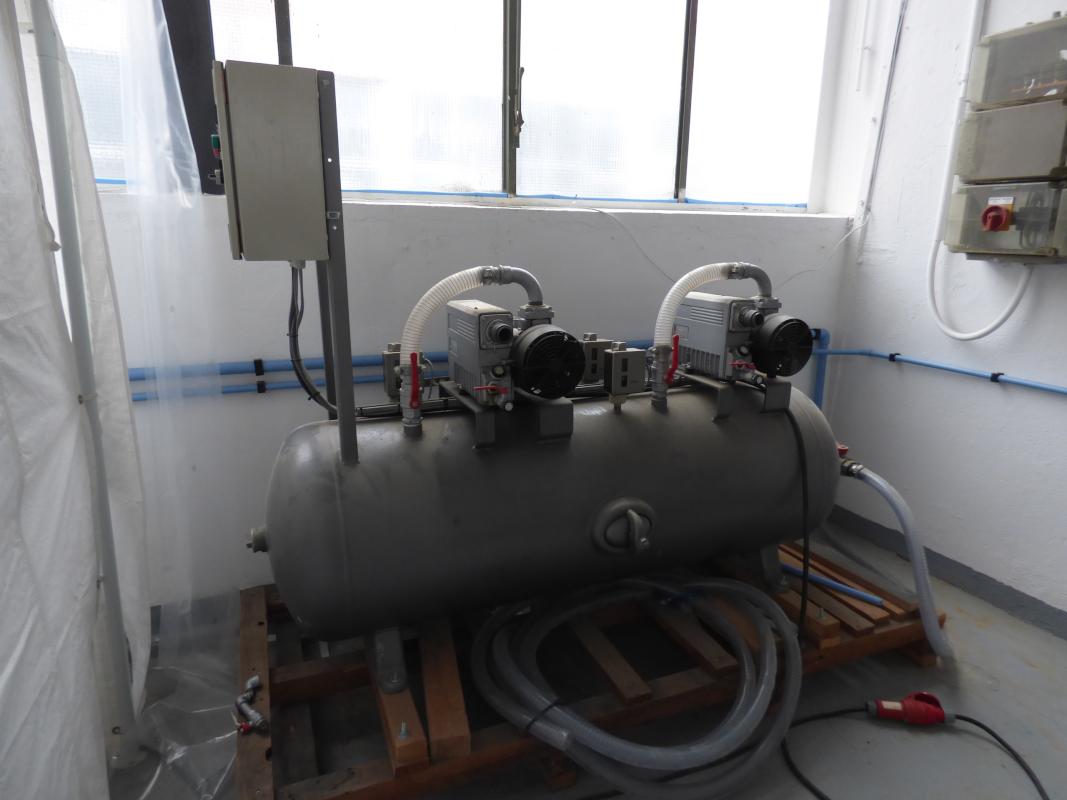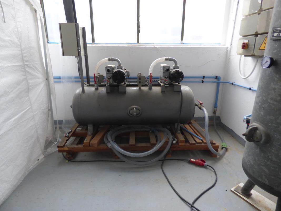 Make: BUSCH B.V. WOERDEN, Consisting of: 2 vacuum pumps, manufacturer Busch, compressed air tank, horizontal, capacity approx. 500 l, control unit
