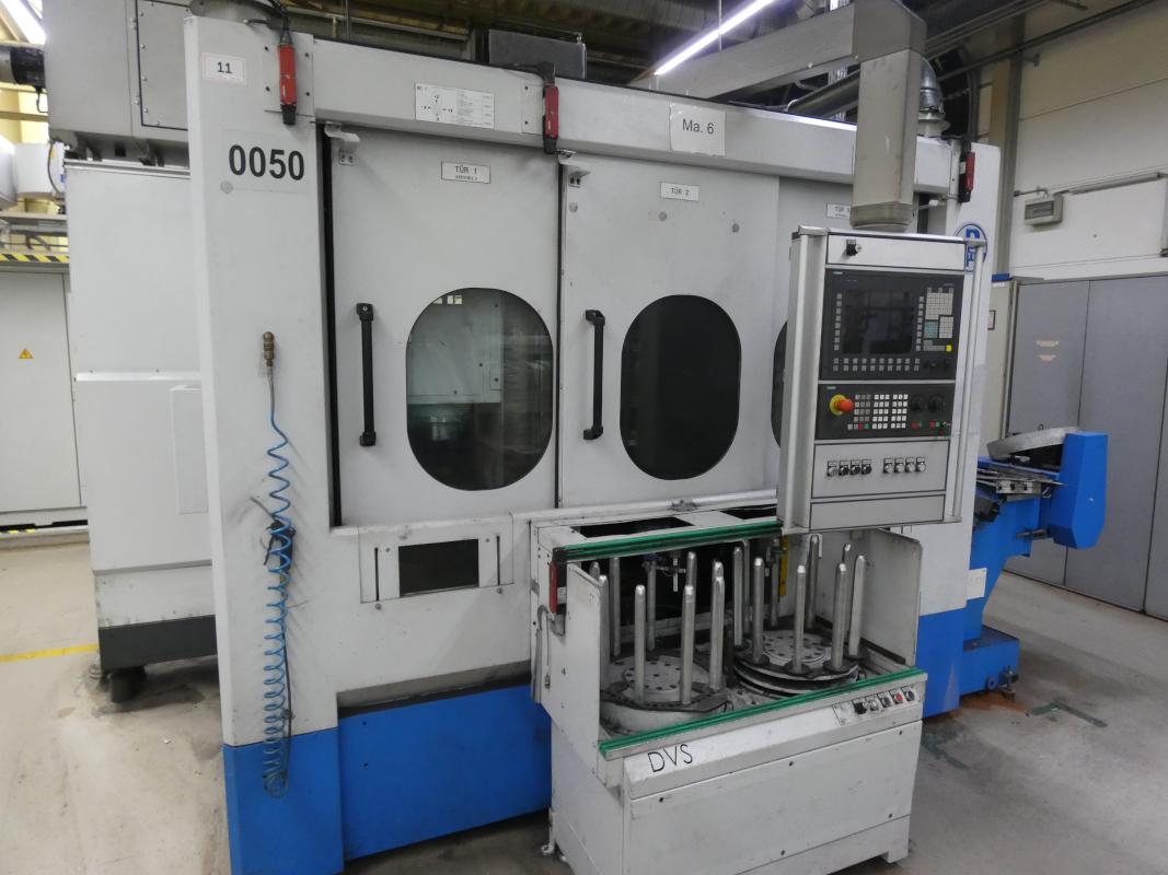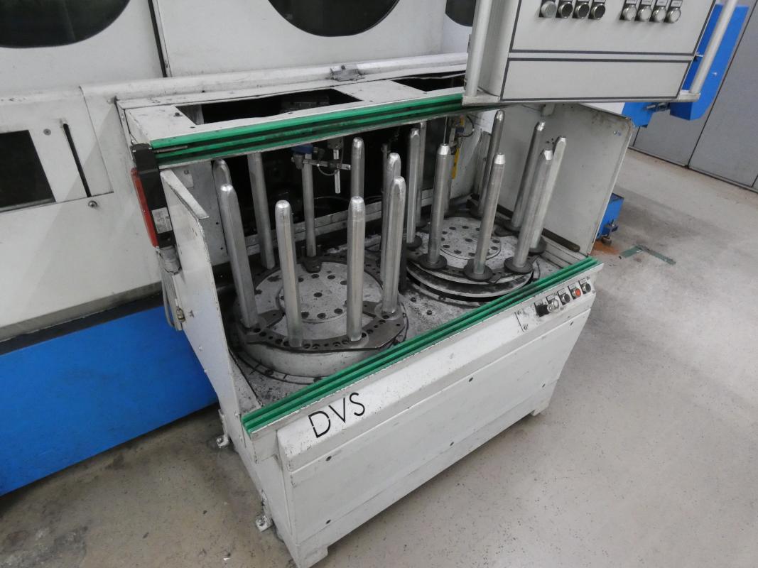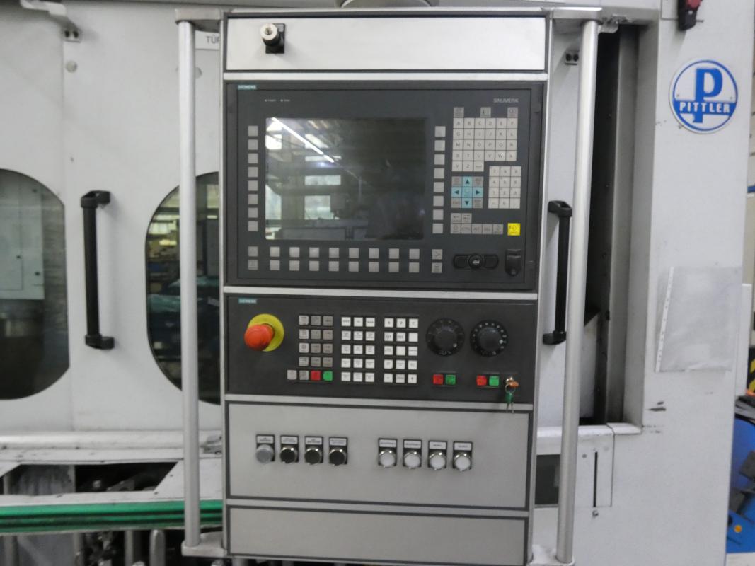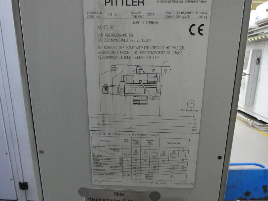 Make: PITTLER, Model: PV SL N1, Year of construction: 2011, Ma. No. LN070, control unit, Siemens, type Sinumerik 840D sl Powerline, incl. handwheel, 2 spindles, 2 work areas, 2 cross slides, turning diameter max. 100 mm, workpiece height max. 40 mm, simultaneous operation, spindle speed max. 6,300 rpm, 2 x 8-station turrets, driven tool stations, chip conveyor, Knoll, extraction system, ILT, cooling unit, Hydac, workpiece automation with raw part storage and finished part storage