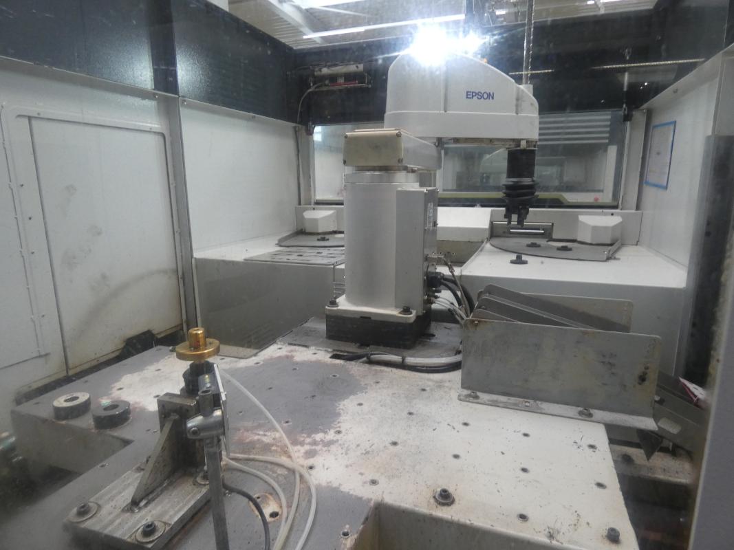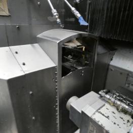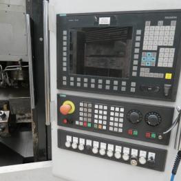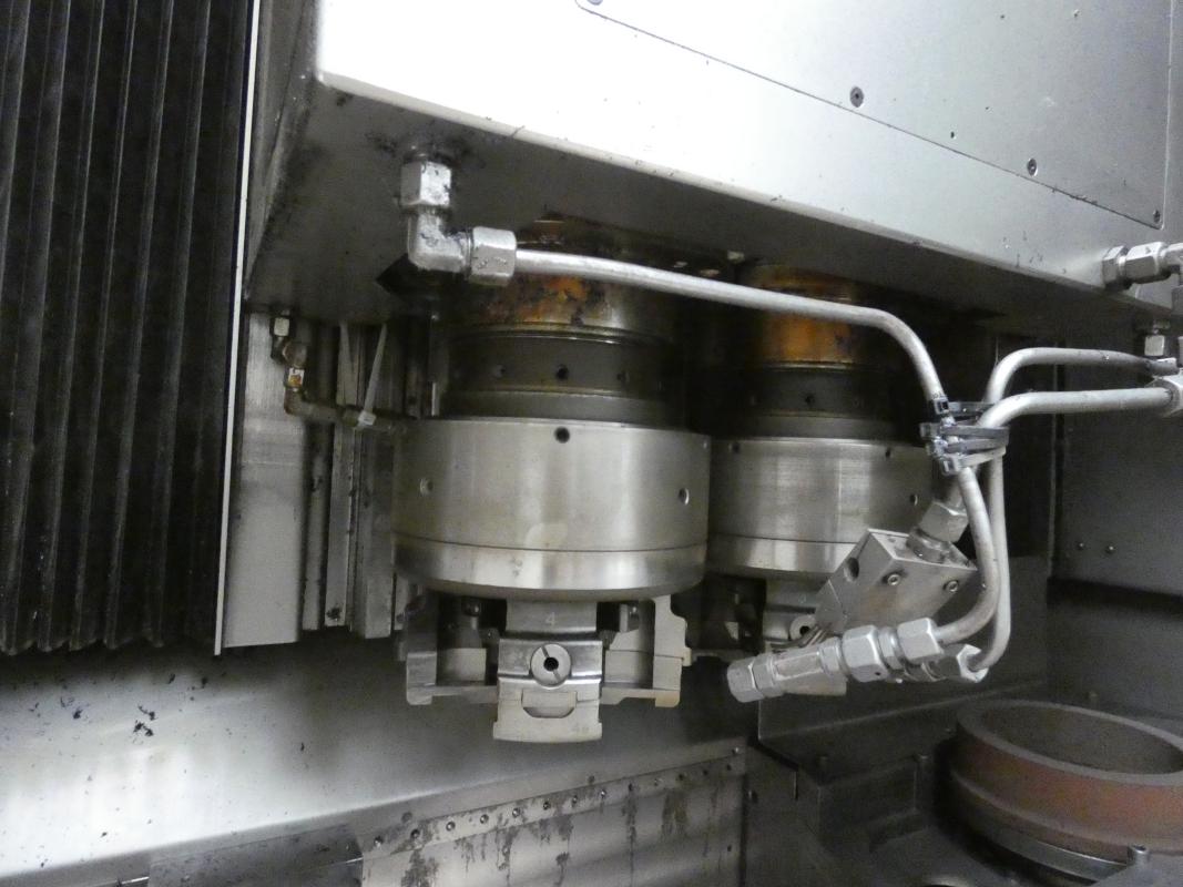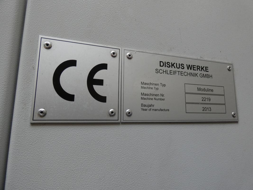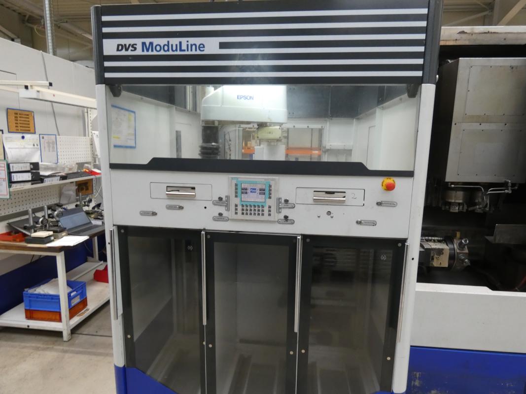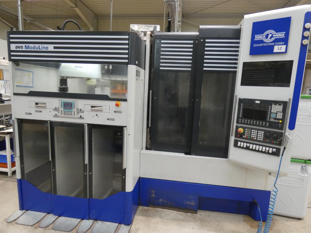 Make: DISKUS-WERKE, Model: ModuLine DS 300 SO, Year of construction: 2013, Ma. No. 2219, Siemens Sinumerik 840D sl control system, 2 spindles, spindle spacing 210 mm, maximum spindle speed approx. 4000 rpm, grinding spindle 2000 rpm, maximum workpiece diameter 100 mm, maximum workpiece height 40 mm, 8-position tool turret Sauter, type 0.5.480.516, tool holder Capto C5, workpiece automation device DVS Moduline, transfer robot Epson, Siemens PLC, Simatic Panel Touch display, coolant system Knoll KF150/950, paper belt filter, chip conveyor Knoll 225S-2/170