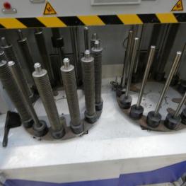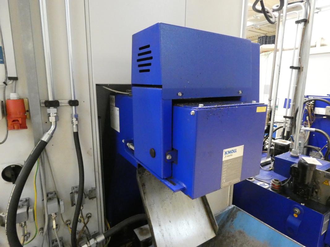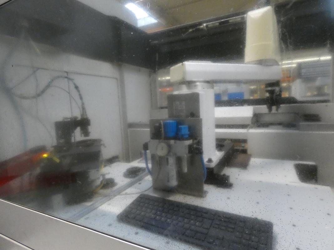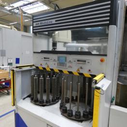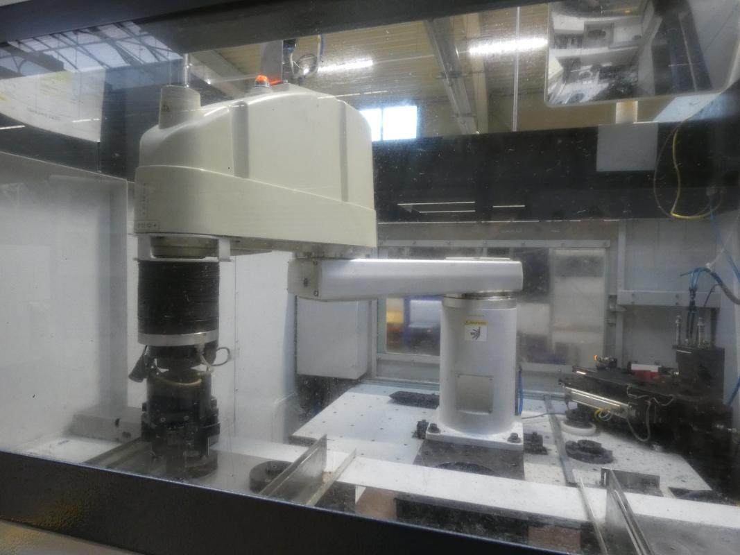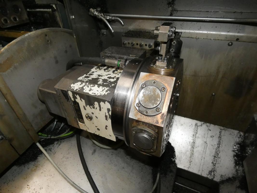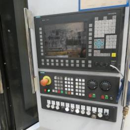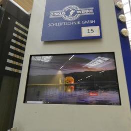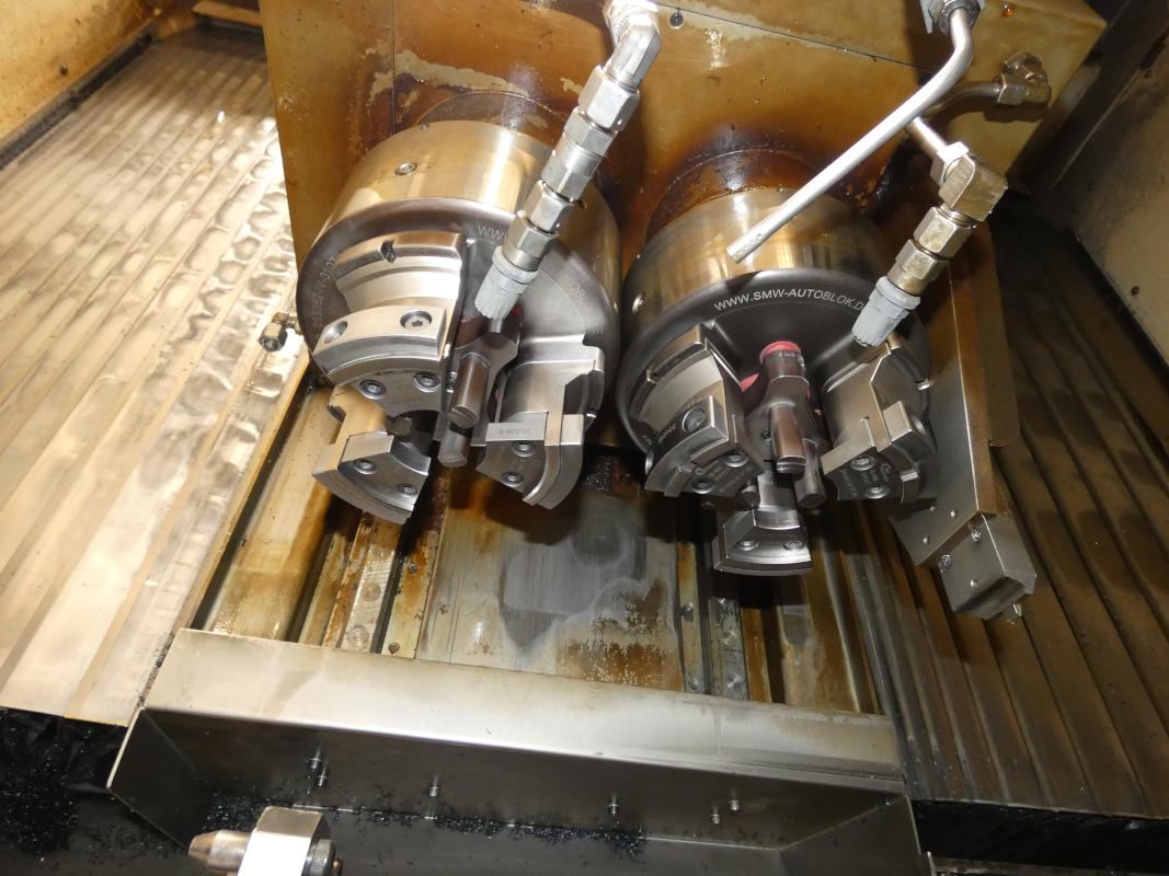 Make: DISKUS-WERKE, Model: ModuLine DS 300 SO, Year of construction: 2013, Ma.-No. 2220, Siemens Sinumerik 840D sl control system, 2 spindles, spindle spacing 210 mm, maximum workpiece diameter 100 mm, maximum workpiece height 40 mm, maximum spindle speed approx. 4000 rpm, grinding spindle 2000 rpm, 8-position tool turret Sauter, type 0.5.480.516, tool holder Capto C5, workpiece automation device DVS Moduline, transfer robot Epson, Siemens PLC, Simatic Panel Touch display, coolant system Knoll KF150/950, paper belt filter, chip conveyor Knoll 225S-2/170